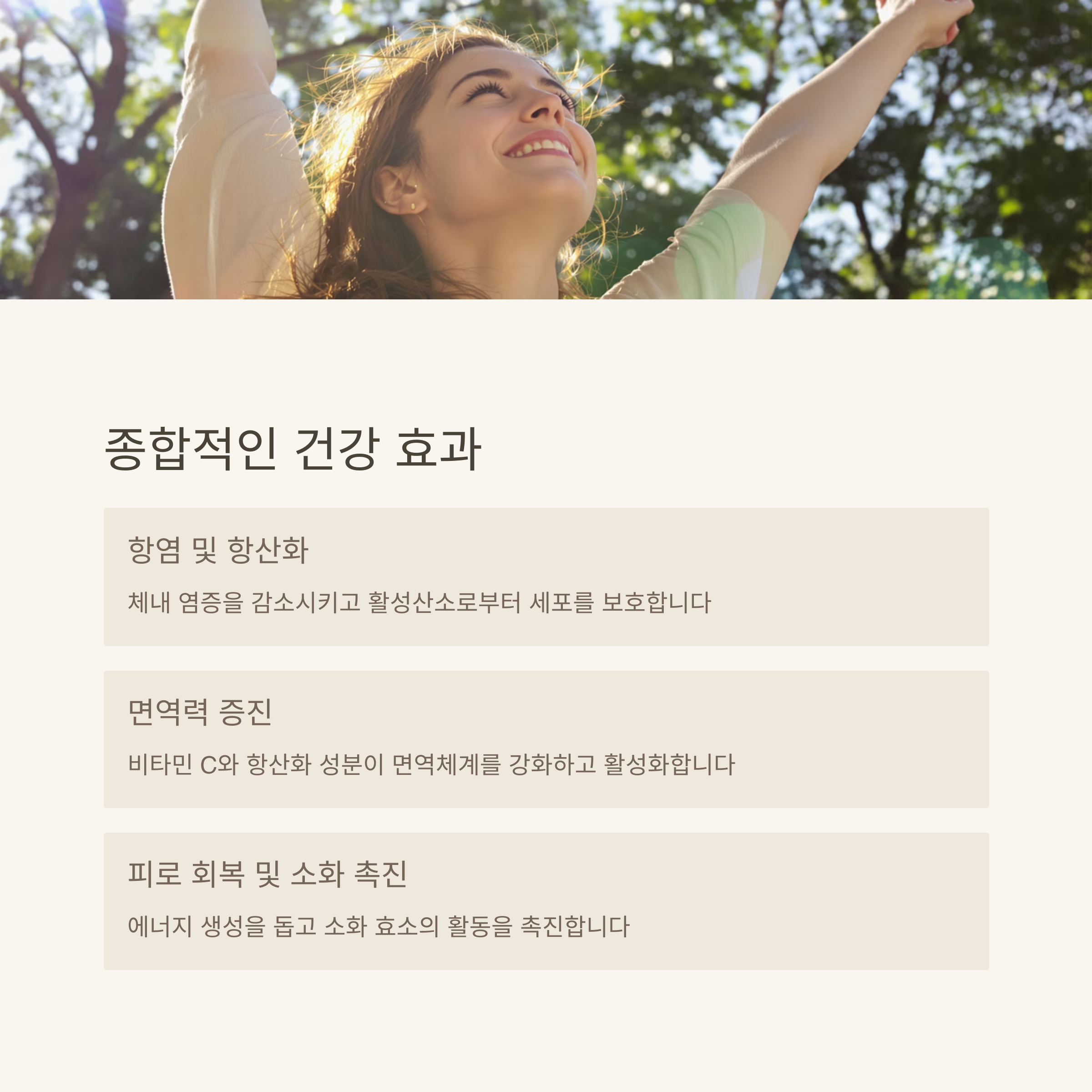 항산화 효과 및 면역력 강화 후성 유전적 조절 통한 간 보호 일정량 이상 섭취 시 주의 필요