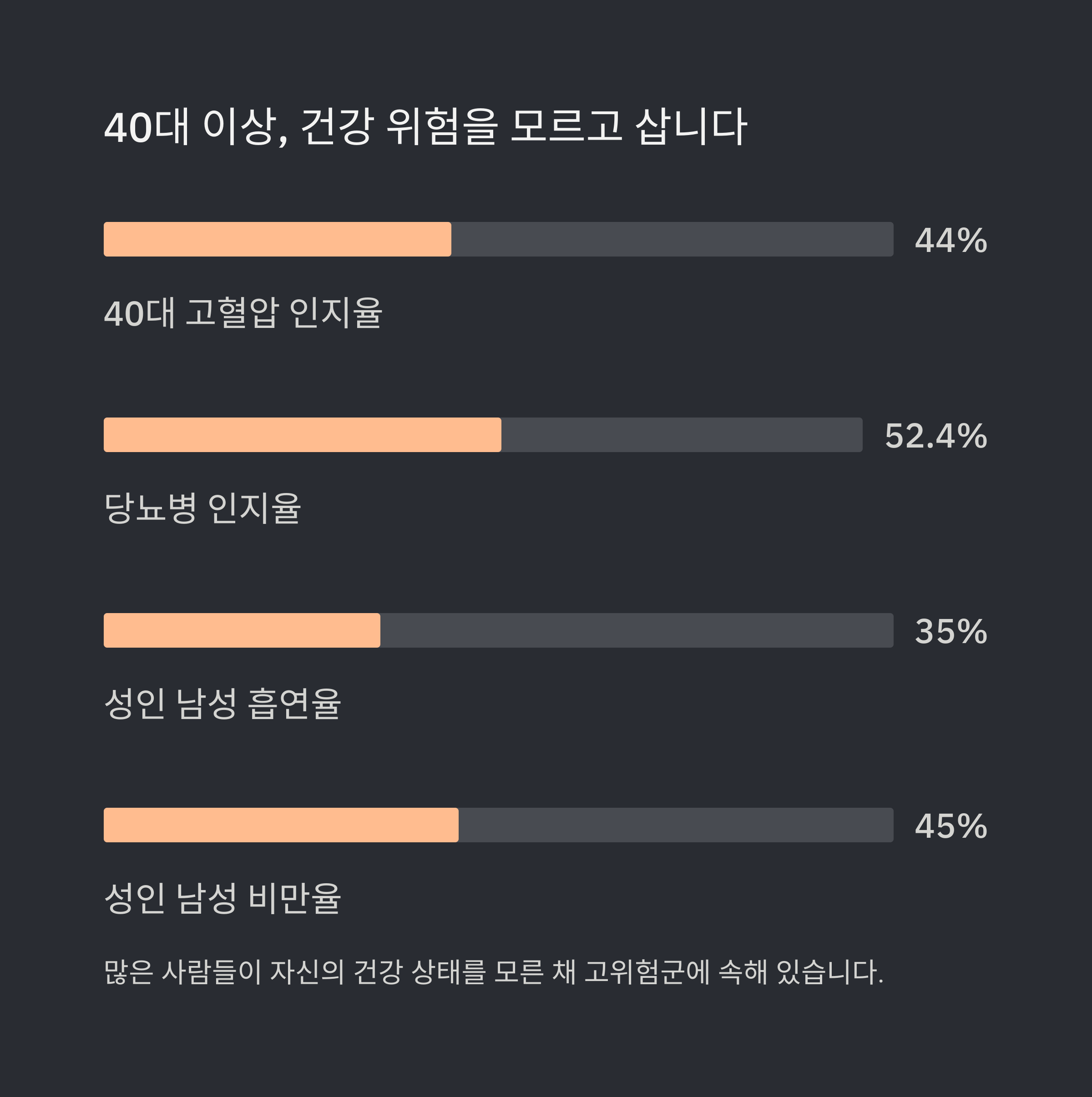 2022년 기준으로 40대의 고혈압 인지율은 44%에 불과했습니다.