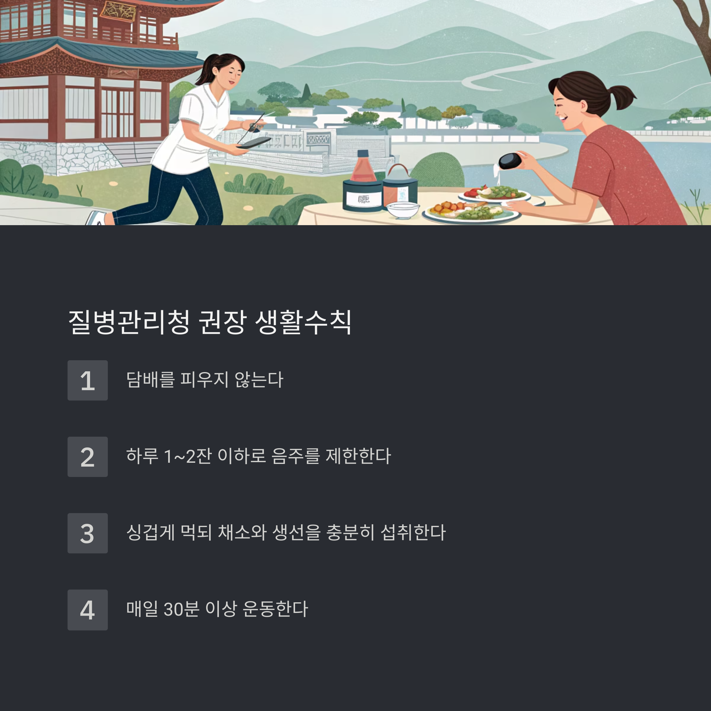 특히 흡연과 음주 절제, 정기적인 건강 검진은 기본입니다.