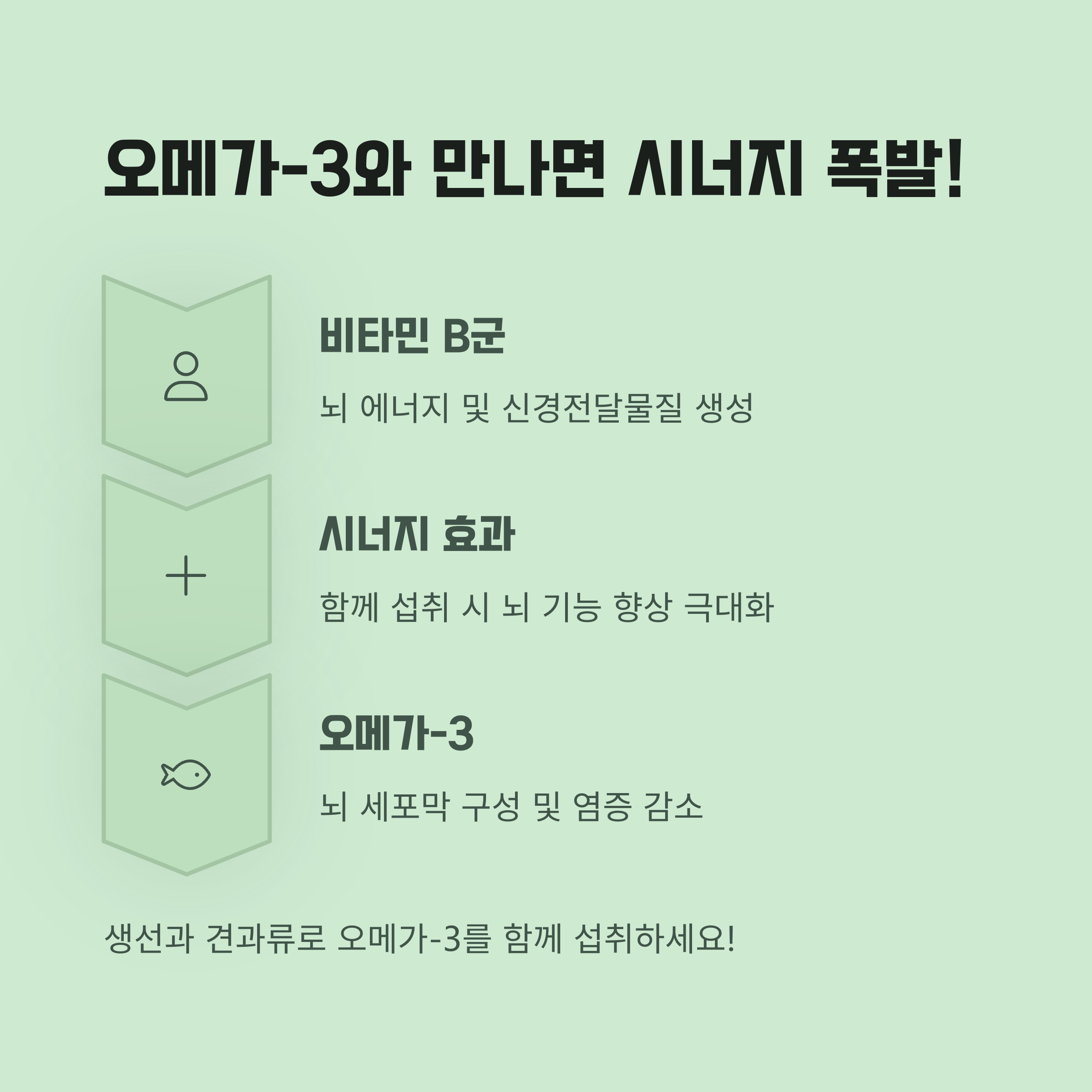 비타민 B군과 오메가-3는 서로 다른 방식으로 뇌 기능을 향상시켜요. 그런데 이 둘을 함께 섭취하면, 그 효과가 배가될 수 있다는 사실! 특히 노년층에선 그 시너지 효과가 더 크게 나타난다고 해요. 함께 섭취할 때 기대할 수 있는 장점을 정리해볼게요.