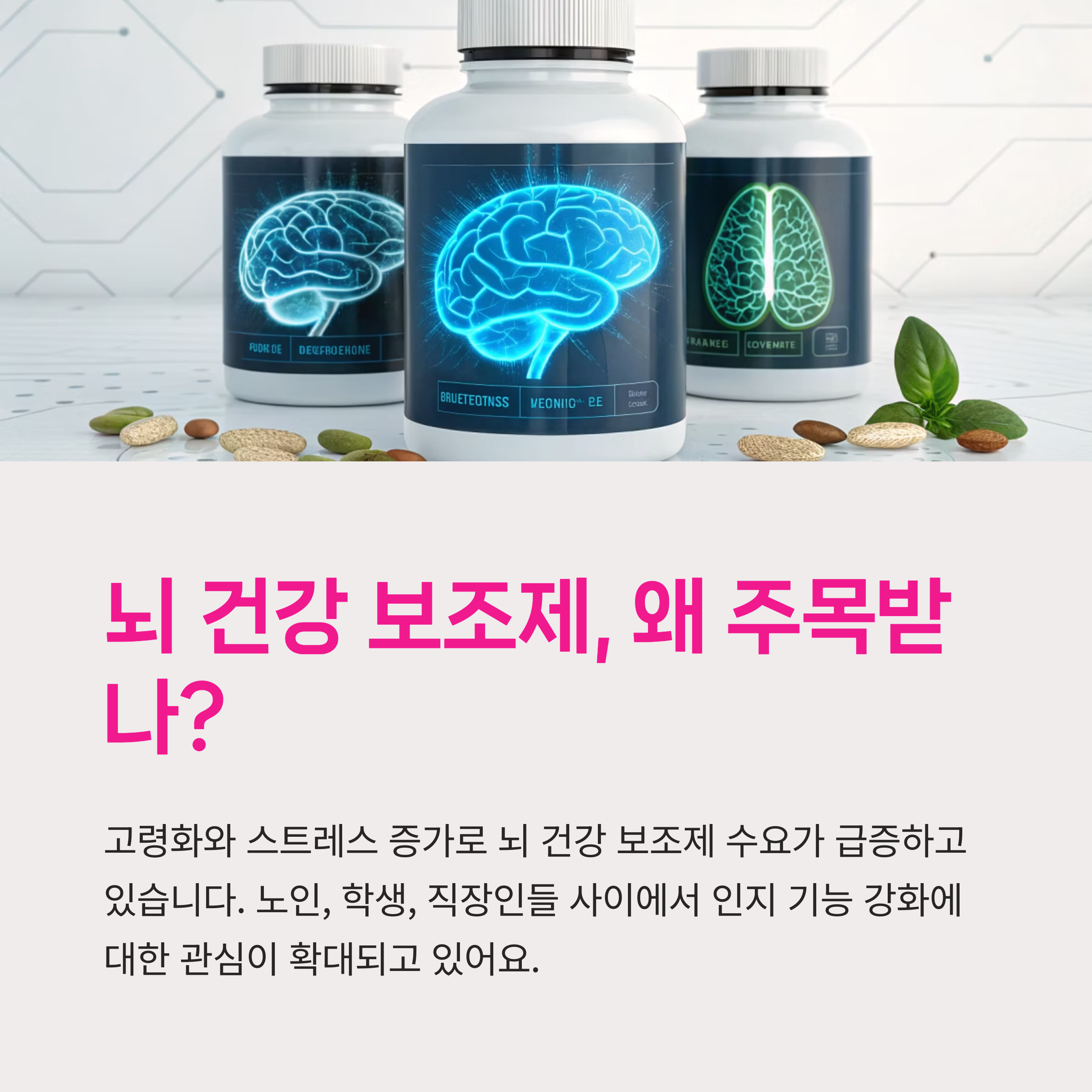 최근 몇 년간 뇌 건강에 대한 관심이 빠르게 증가하고 있습니다. 특히 고령화 인구의 증가, 스트레스와 피로 누적, 그리고 집중력 저하 등 다양한 원인으로 인해 뇌 건강을 개선하려는 수요가 꾸준히 확대되고 있습니다. 그에 따라 자연 유래 성분을 활용한 보조제 제품의 시장 또한 폭발적인 성장을 보이고 있으며, 건강한 뇌 기능 유지를 위한 다양한 방법이 논의되고 있습니다. 오늘은 뇌 건강과 인지 기능 향상에 도움이 될 수 있는 대표적인 천연 성분인 마카, 오메가-3, 비타민, 그리고 최근 주목받는 누트로픽 보충제까지, 다양한 정보를 함께 살펴보려 합니다. 소비자 입장에서 어떤 성분이 효과적인지, 어떤 제품을 선택해야 하는지 명확한 기준이 필요하기에 믿을 수 있는 데이터와 함께 알려드리겠습니다.