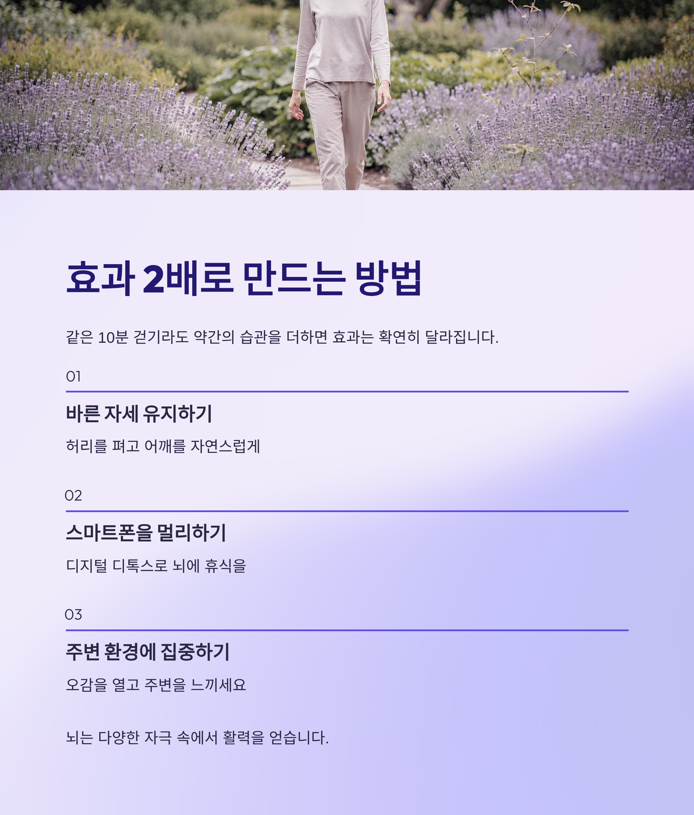 단 10분의 걷기만으로도 뇌는 활기를 되찾습니다.