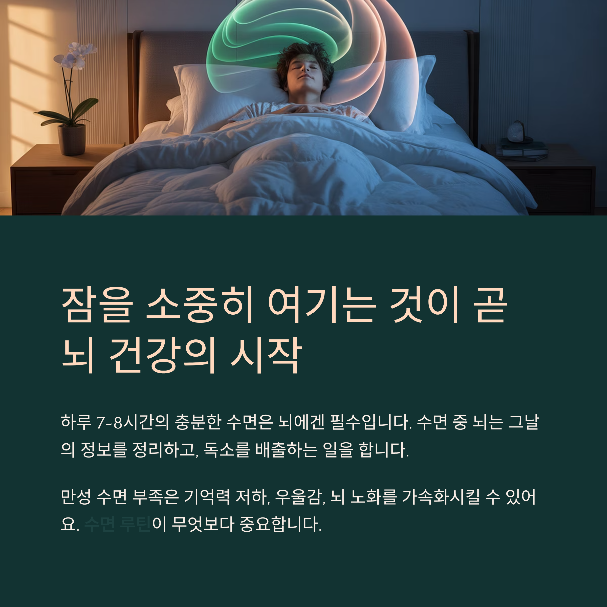 만성 수면 부족은 기억력 저하, 우울감, 뇌 노화를 가속화시킬 수 있어요.