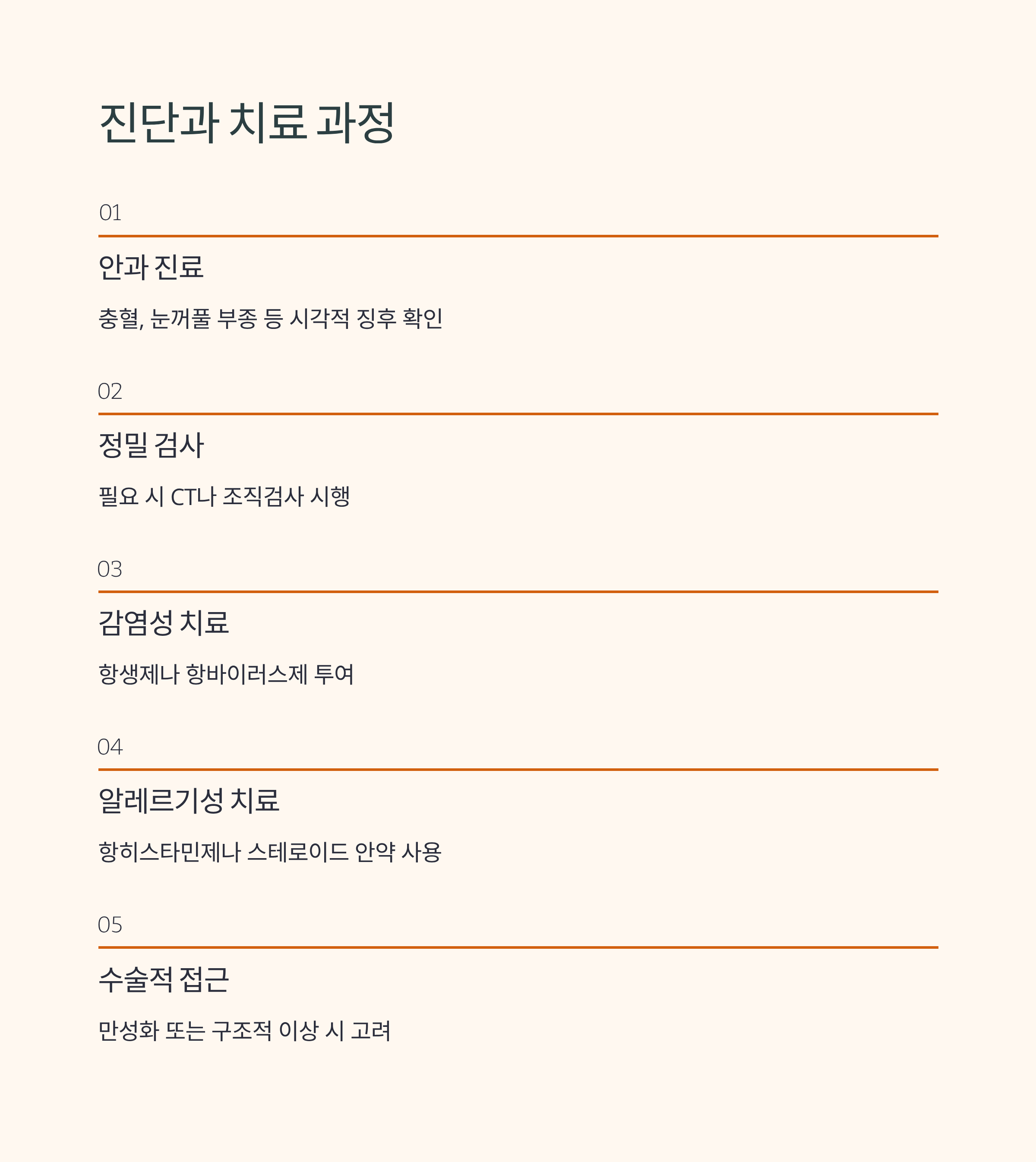 안과 진료를 통해 충혈, 눈꺼풀 부종 등 시각적 징후를 확인하고, 필요에 따라 CT나 조직검사까지 시행됩니다. 감염성이 의심될 경우 항생제나 항바이러스제가 투여되며, 알레르기성 원인일 경우 항히스타민제나 스테로이드 안약으로 증상을 조절합니다. 만성화되었거나 구조적 이상이 있을 땐 수술적 접근도 고려됩니다.