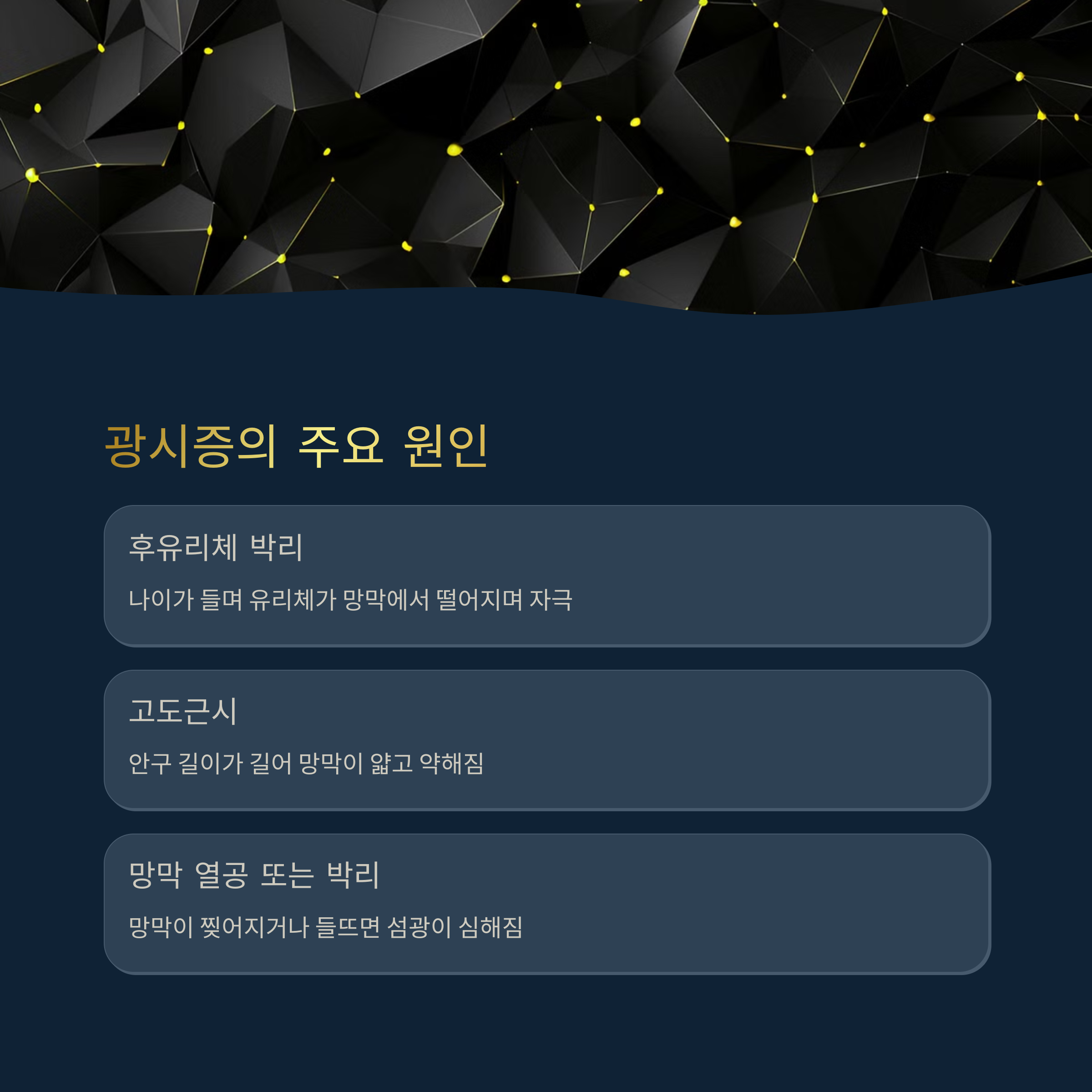 대표적인 원인으로는 후유리체 박리가 있으며, 특히 40대 이후