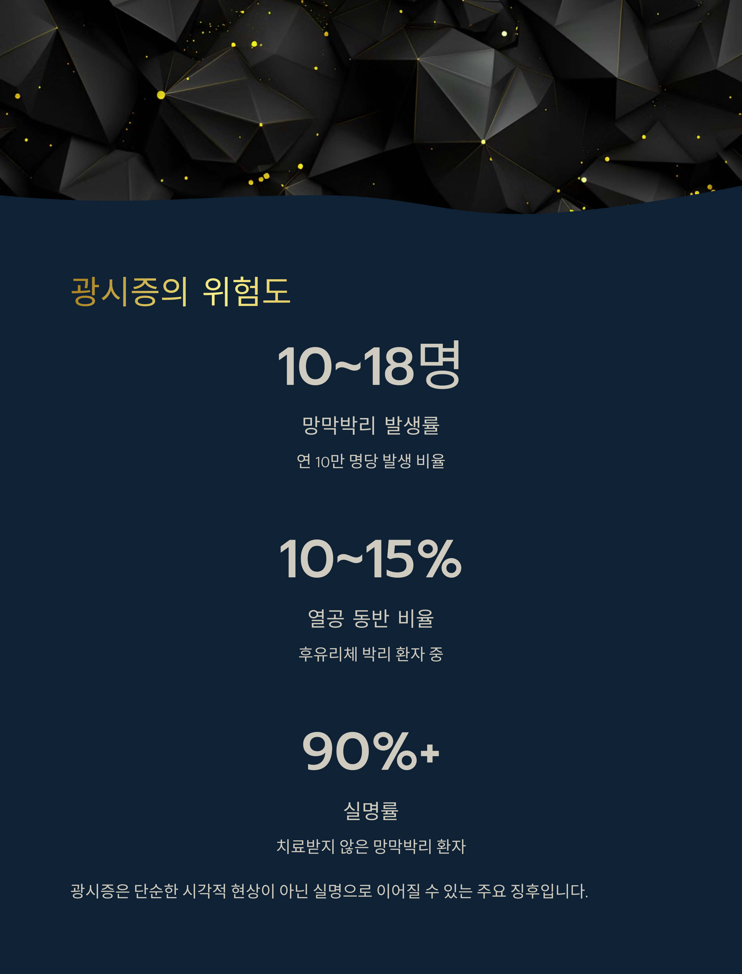 - 정밀 검사 필요: 광시증을 경험했다면 즉시 산동검사나 안저촬영을 통해
