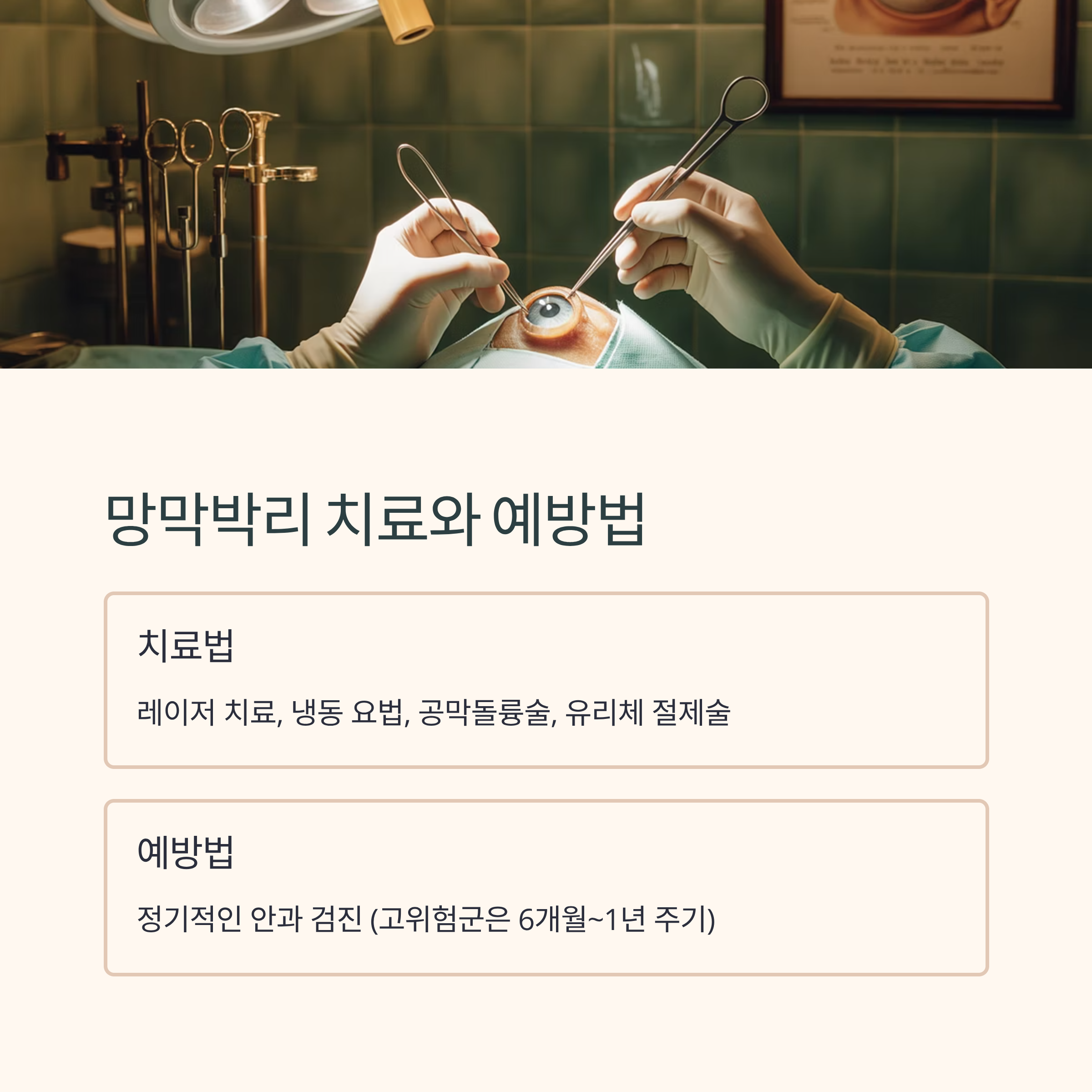 특히 고도근시나 당뇨가 있는 분들은 6개월~1년 주기로 검사받는 것이 좋습니다.