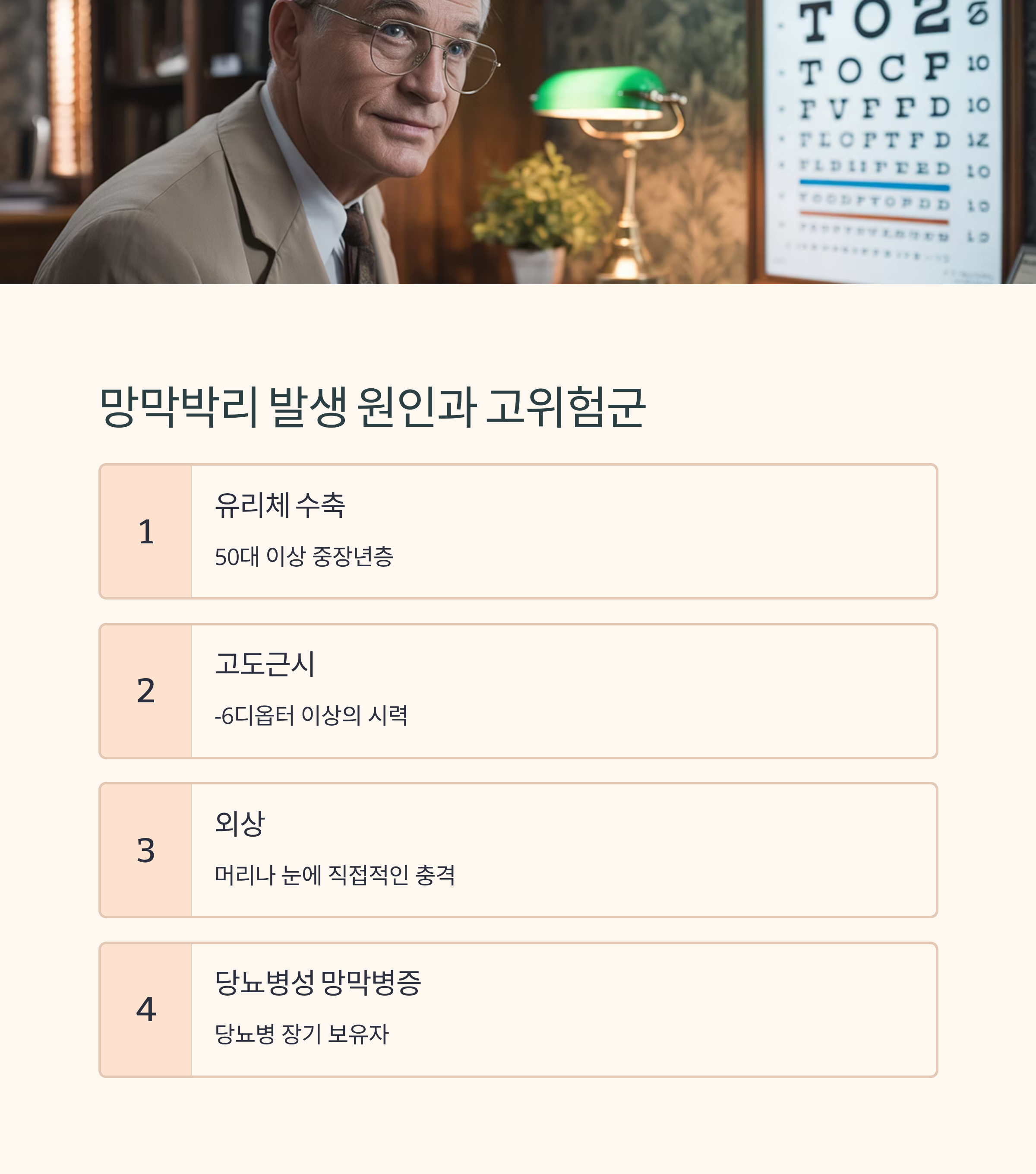이번 글에서는 망막박리의 주요 원인과 전조 증상, 자가 진단법과 치료 시기를 놓치지 않는 방법까지