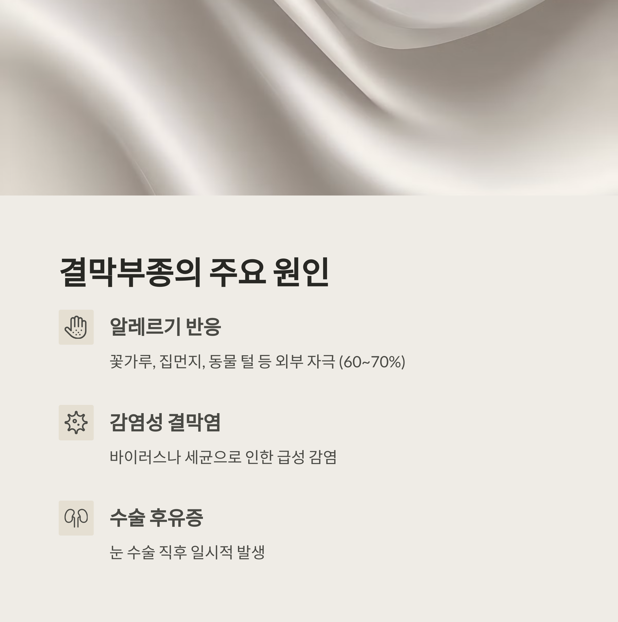 | 감염성 결막염 | 바이러스나 세균으로 인한 급성 감염 |