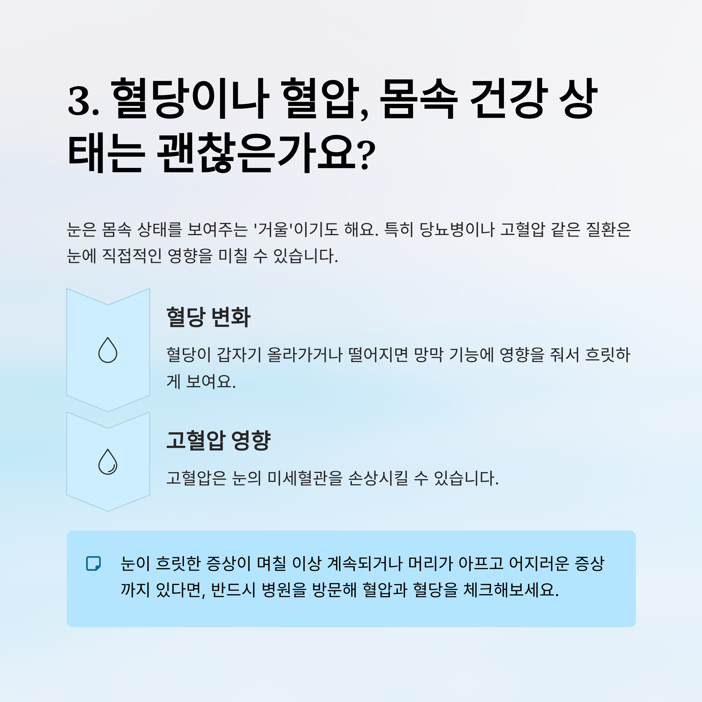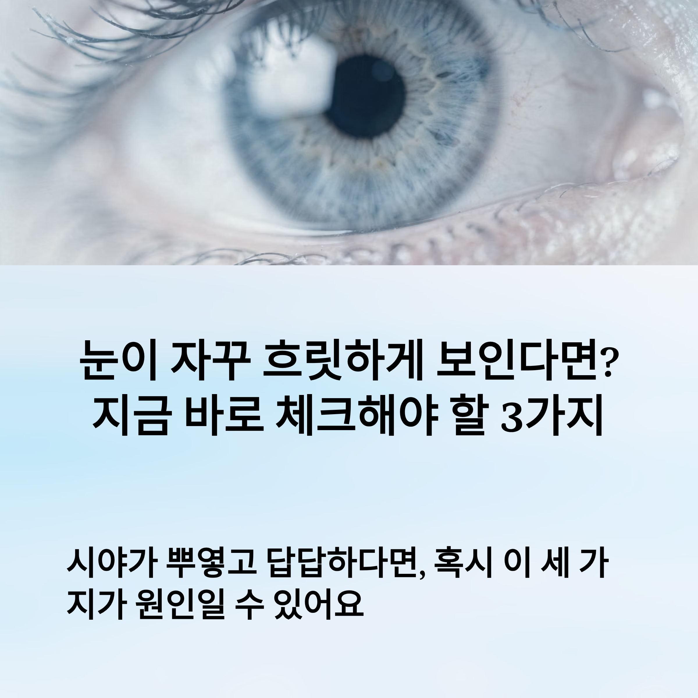 이번 글에서는 눈이 흐릿하게 보일 때 반드시 점검해봐야 할 주요 원인 3가지를 소개드릴게요.