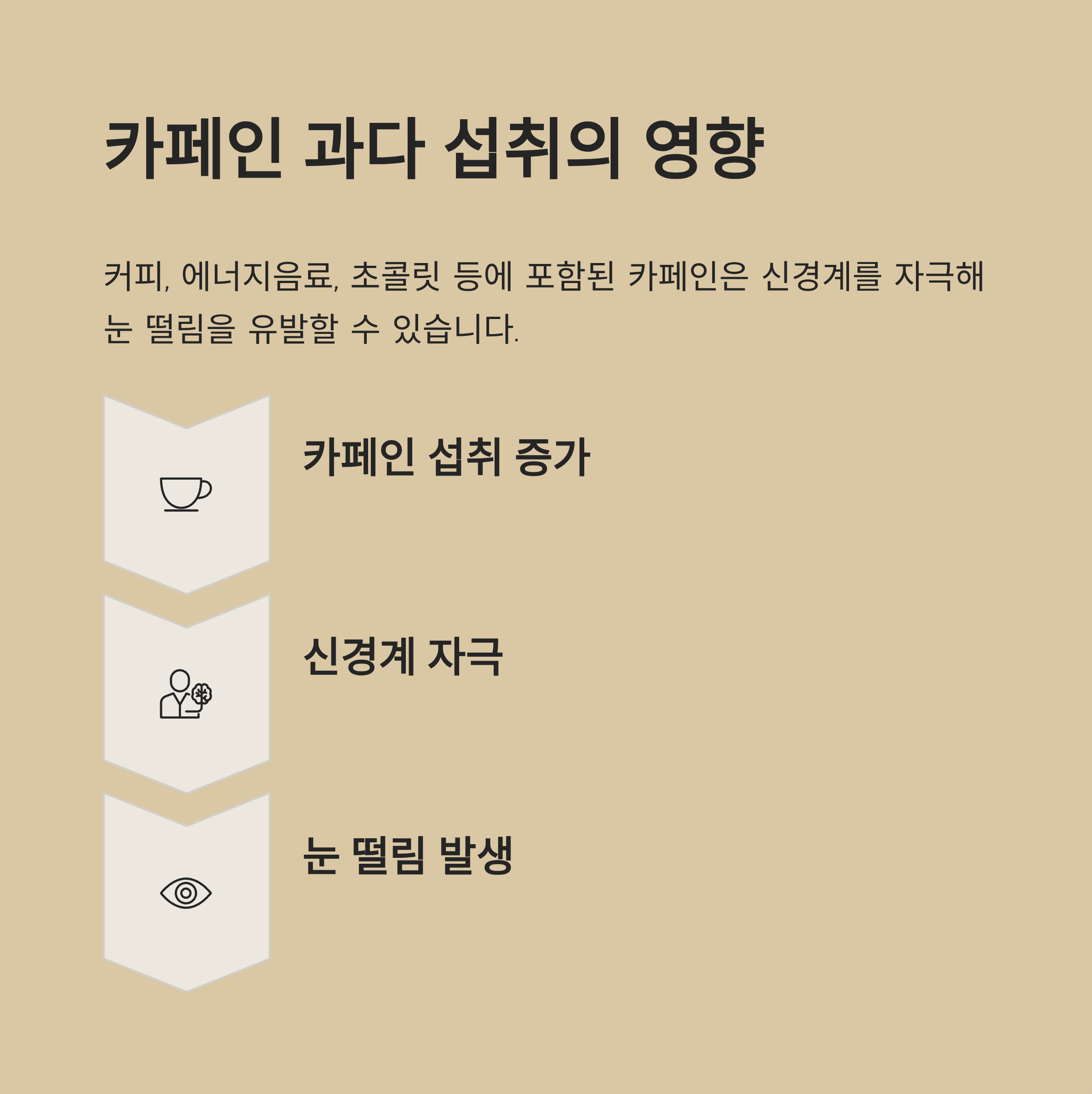 카페인은 신경계를 자극해 일시적 눈 떨림을 유발할 수 있습니다.