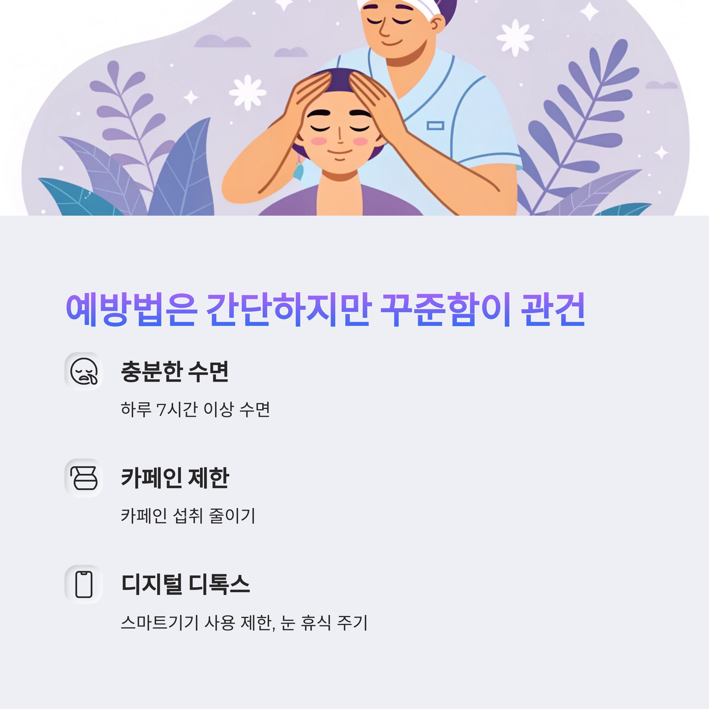 | 눈 근육 피로 | 스마트기기 장시간 사용 등으로 근육 피로 |