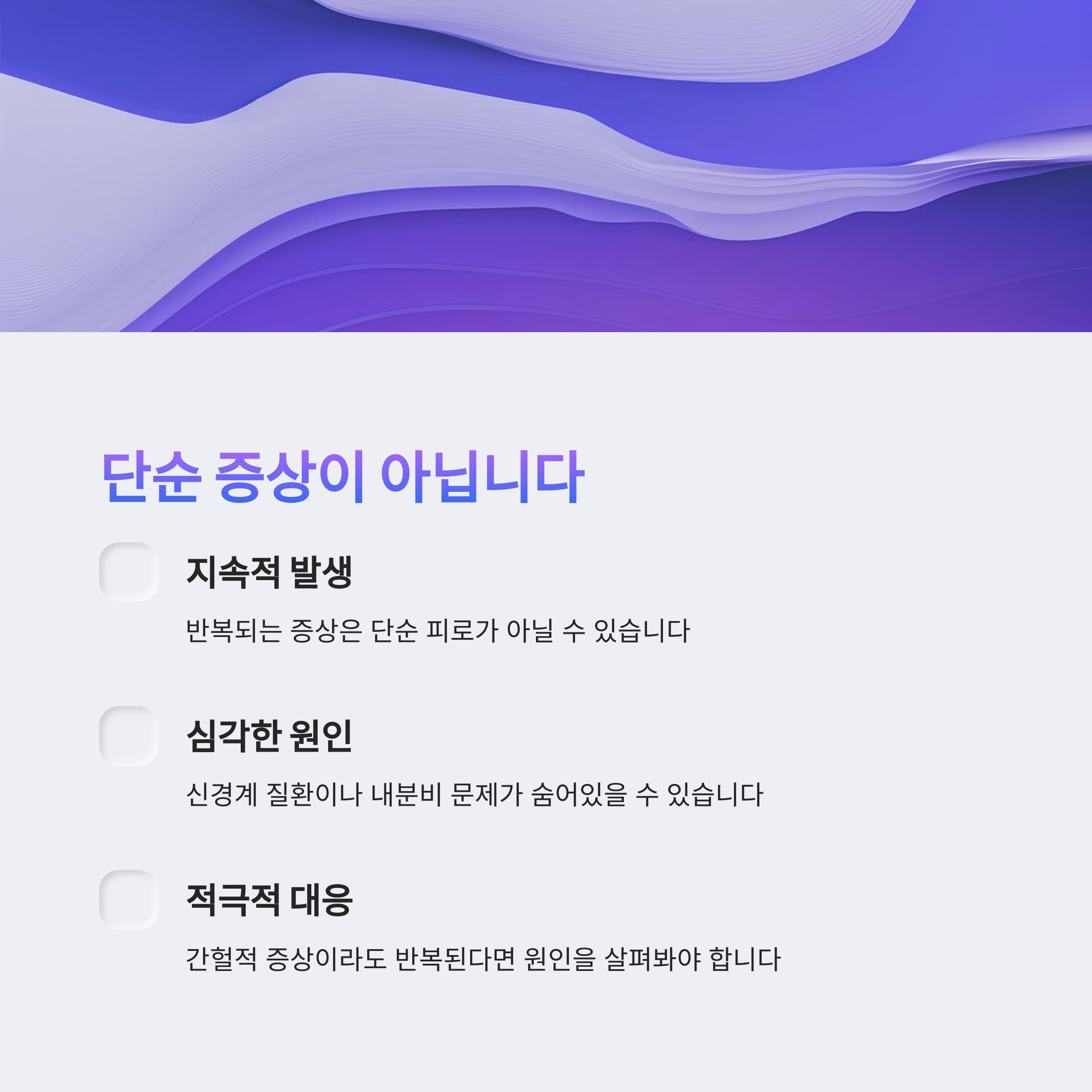 하지만 "지속적으로 발생하거나 강도가 점점 심해진다면" 단순한 문제가 아닐 수 있습니다.