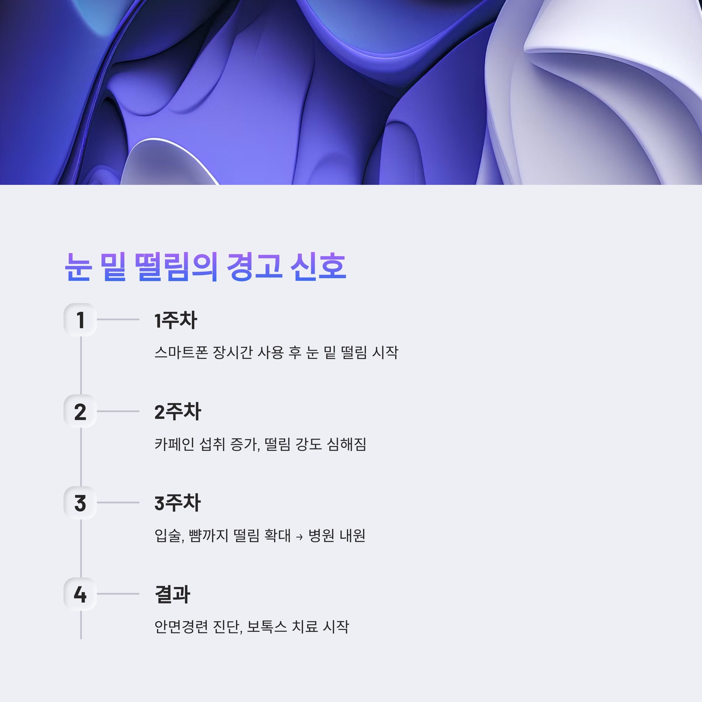 - 1주차: 스마트폰 장시간 사용 후 눈 밑 떨림 시작
