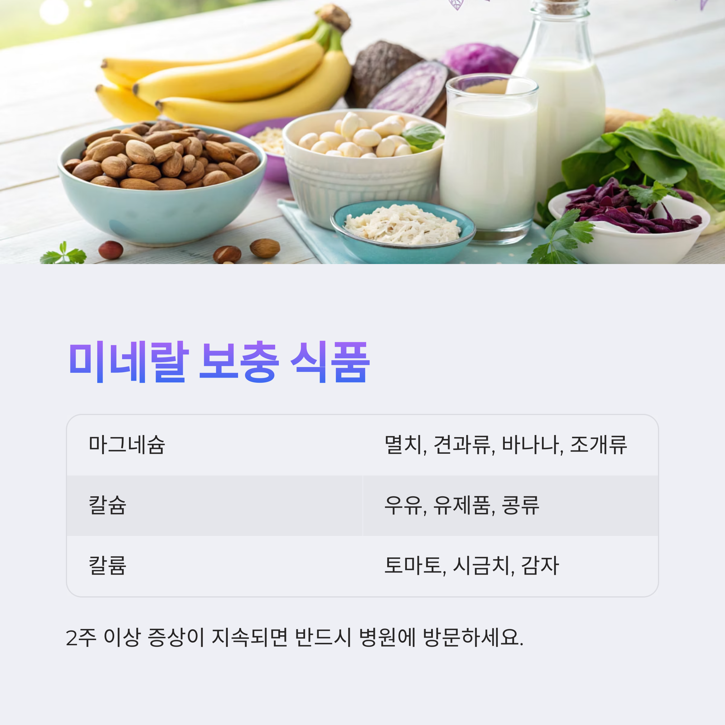 - 마그네슘·칼슘·칼륨이 풍부한 식단