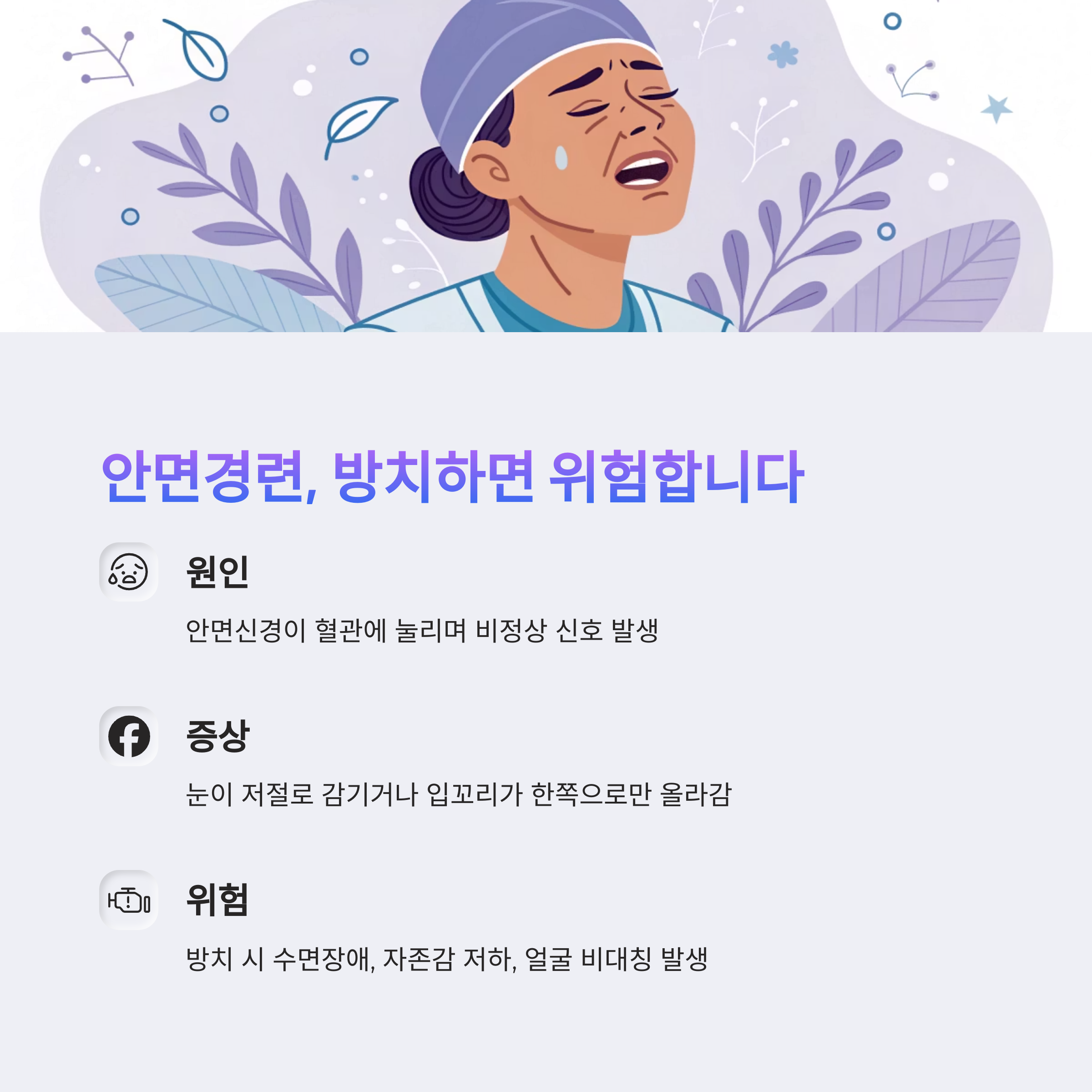 - 결과: 안면경련 진단, 보톡스 치료 시작
