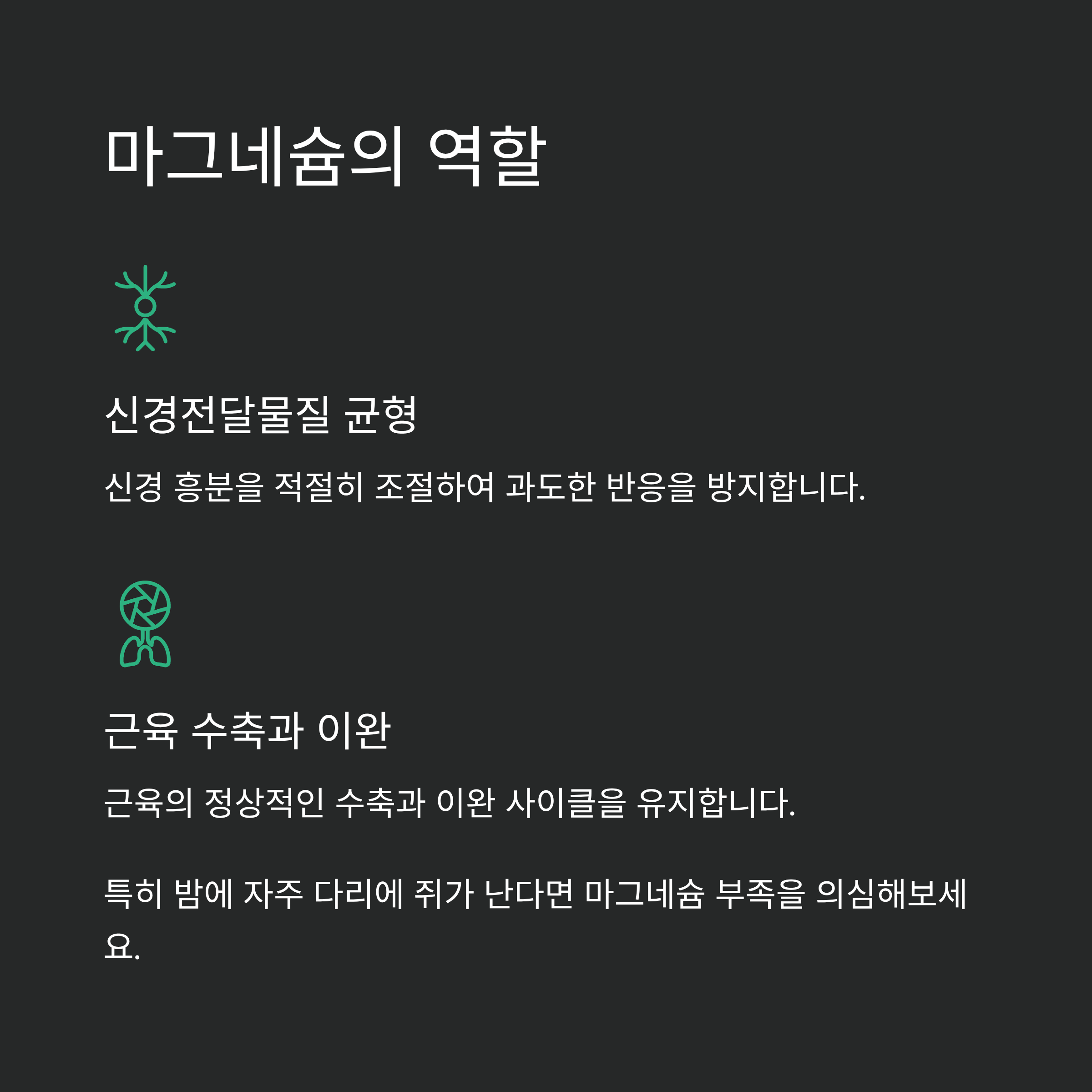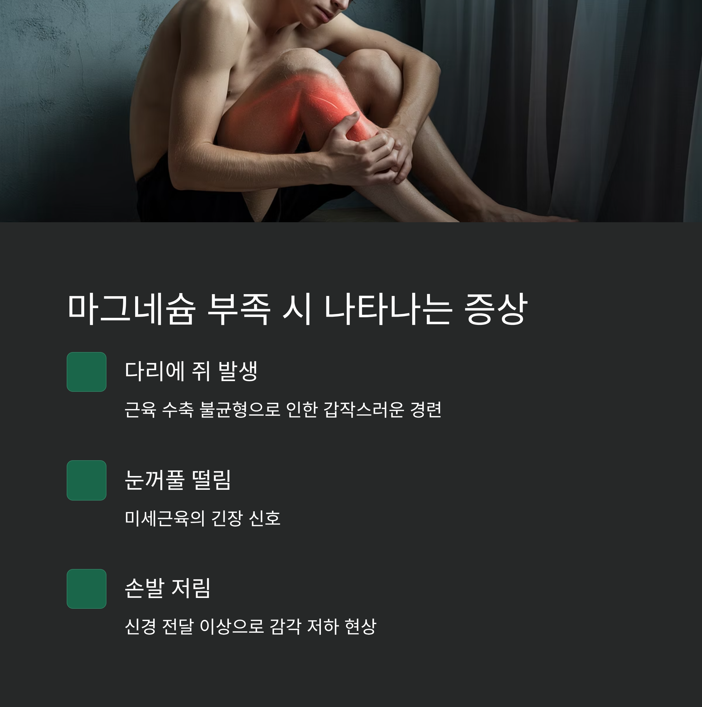 바로 마그네슘 부족입니다. 마그네슘은 근육과 신경의 정상적인 기능을