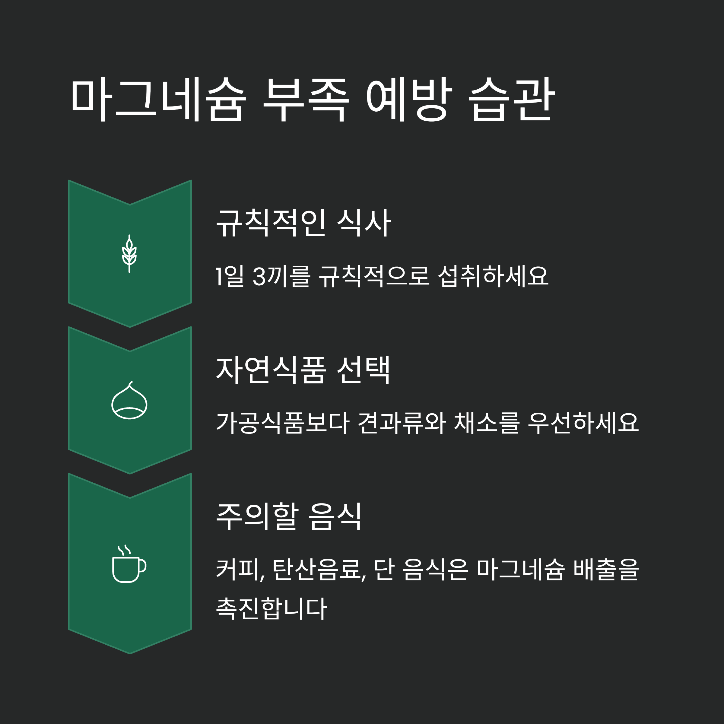 마그네슘이 부족하지 않도록 예방하는 습관