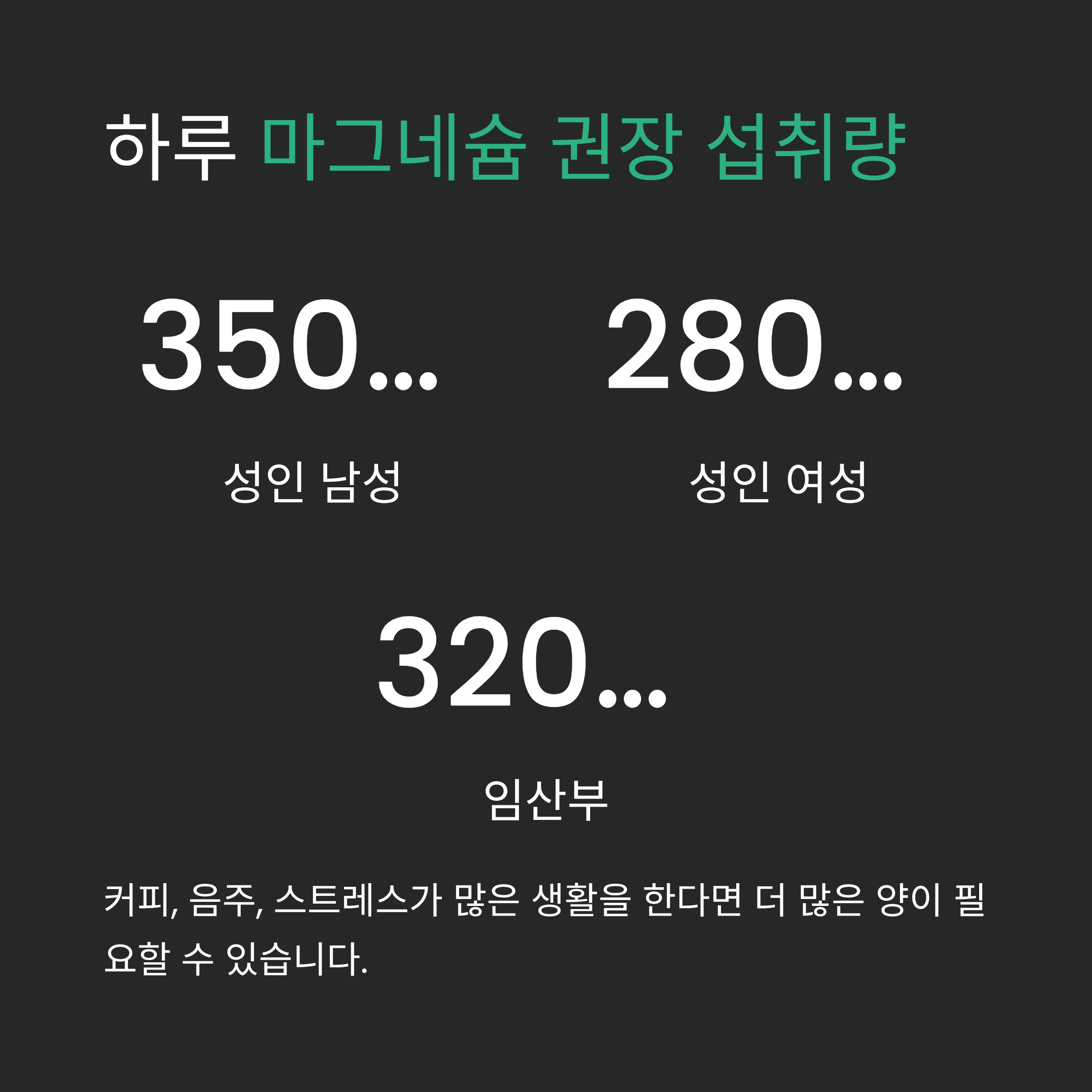 성인 기준으로 하루 마그네슘 권장 섭취량은