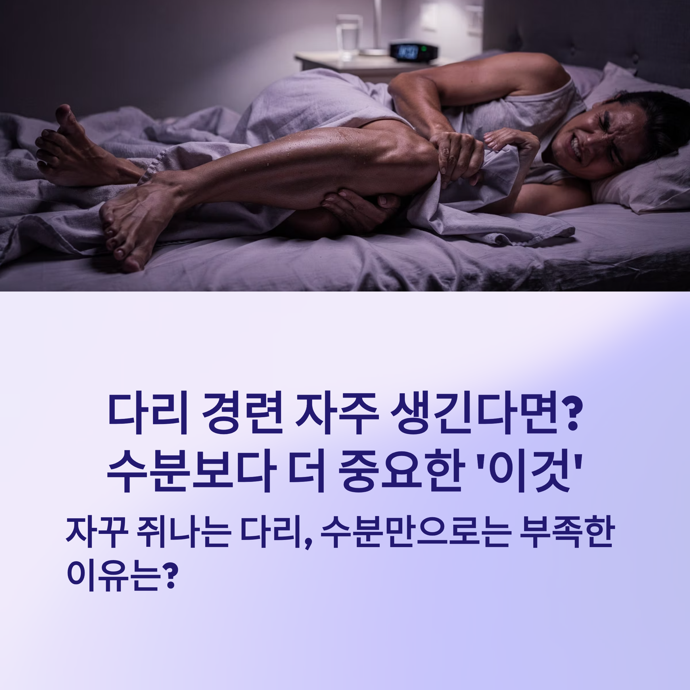 다리에 경련이 자주 생기는 분들, 특히 자다가 갑자기 쥐가 나서 깜짝 놀라신 적 있으시죠? 많은 분들이 수분 부족만을 원인으로 생각하시지만, 사실 그보다 더 중요한 ‘이것’이 있습니다. 오늘은 다리 경련의 원인과 함께 꼭 챙겨야 할 영양소, 생활습관 등을 알아보겠습니다.