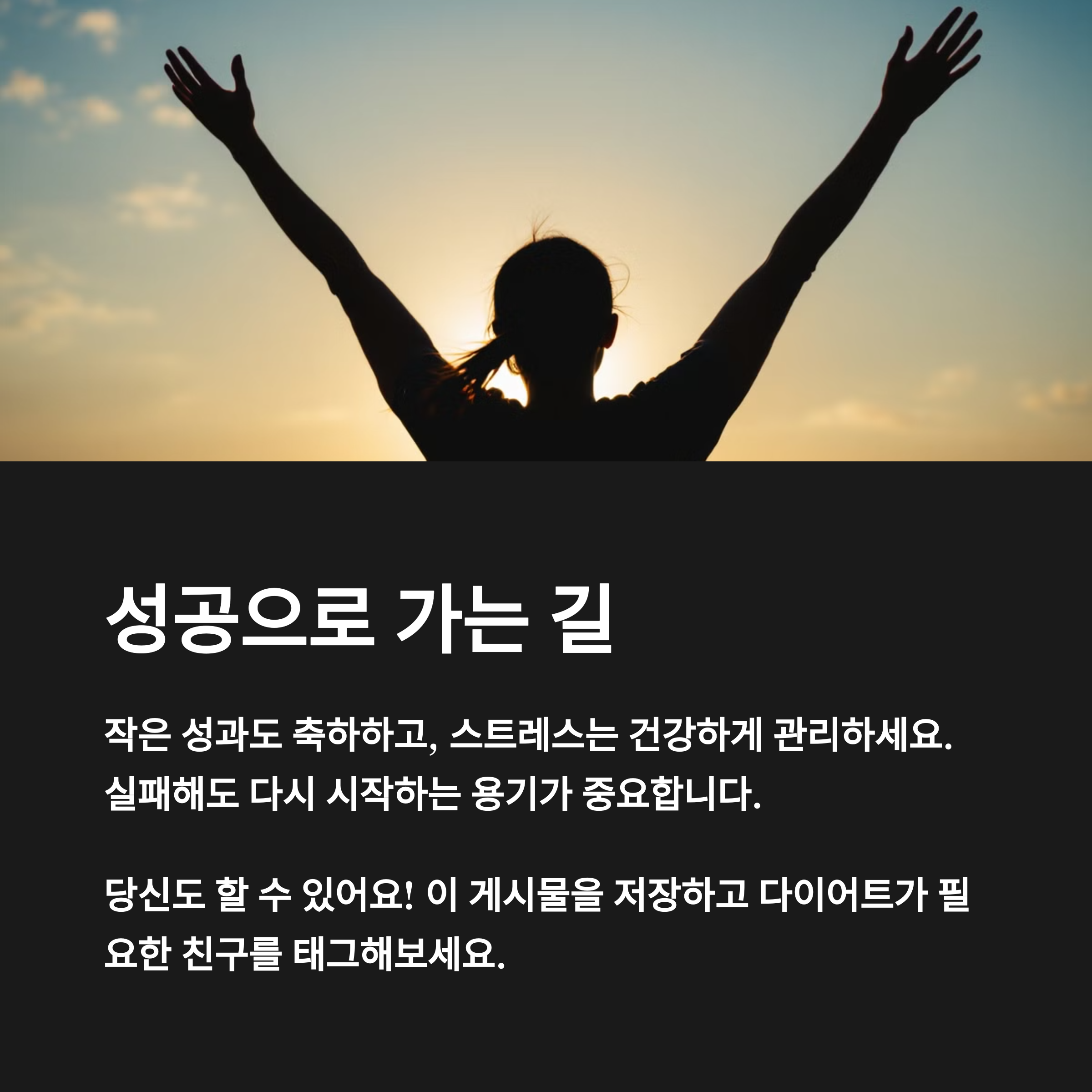 다이어트는 단기간에 끝나는 프로젝트가 아니라, 지속 가능한 건강한 습관으로 자리잡아야 합니다. 목표를 설정하고, 운동과 식단을 조절하며 꾸준히 실천하는 것이 가장 중요합니다. 다이어트에 성공하는 가장 큰 비결은 자신만의 꾸준한 노력을 지속하는 것입니다. 이 글에서 소개한 방법을 참고하여, 여러분도 목표한 체중을 건강하게 달성하시길 바랍니다.