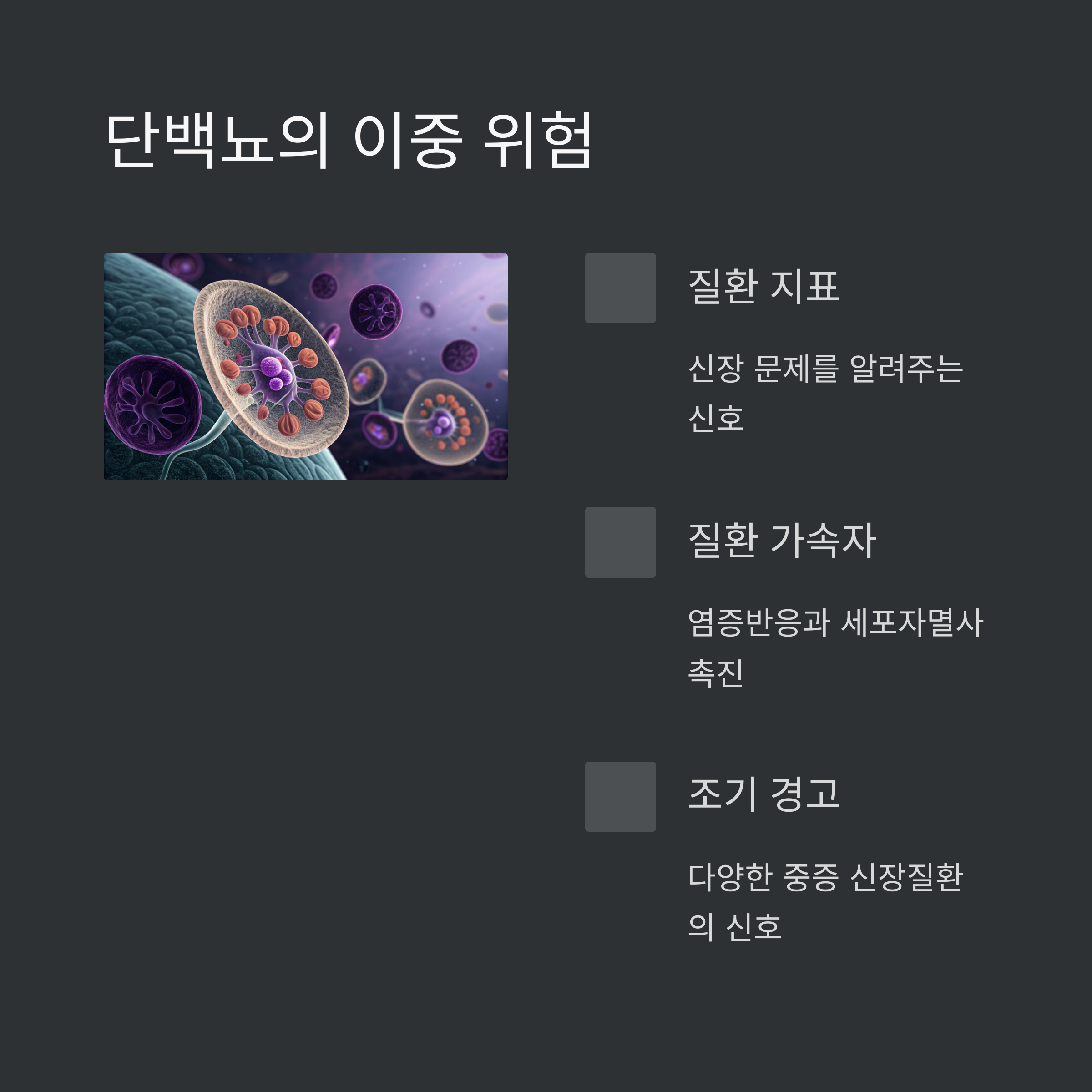 단순한 수치 이상을 넘어, 단백뇨는 신장 내 염증과 세포 손상을 유발하며