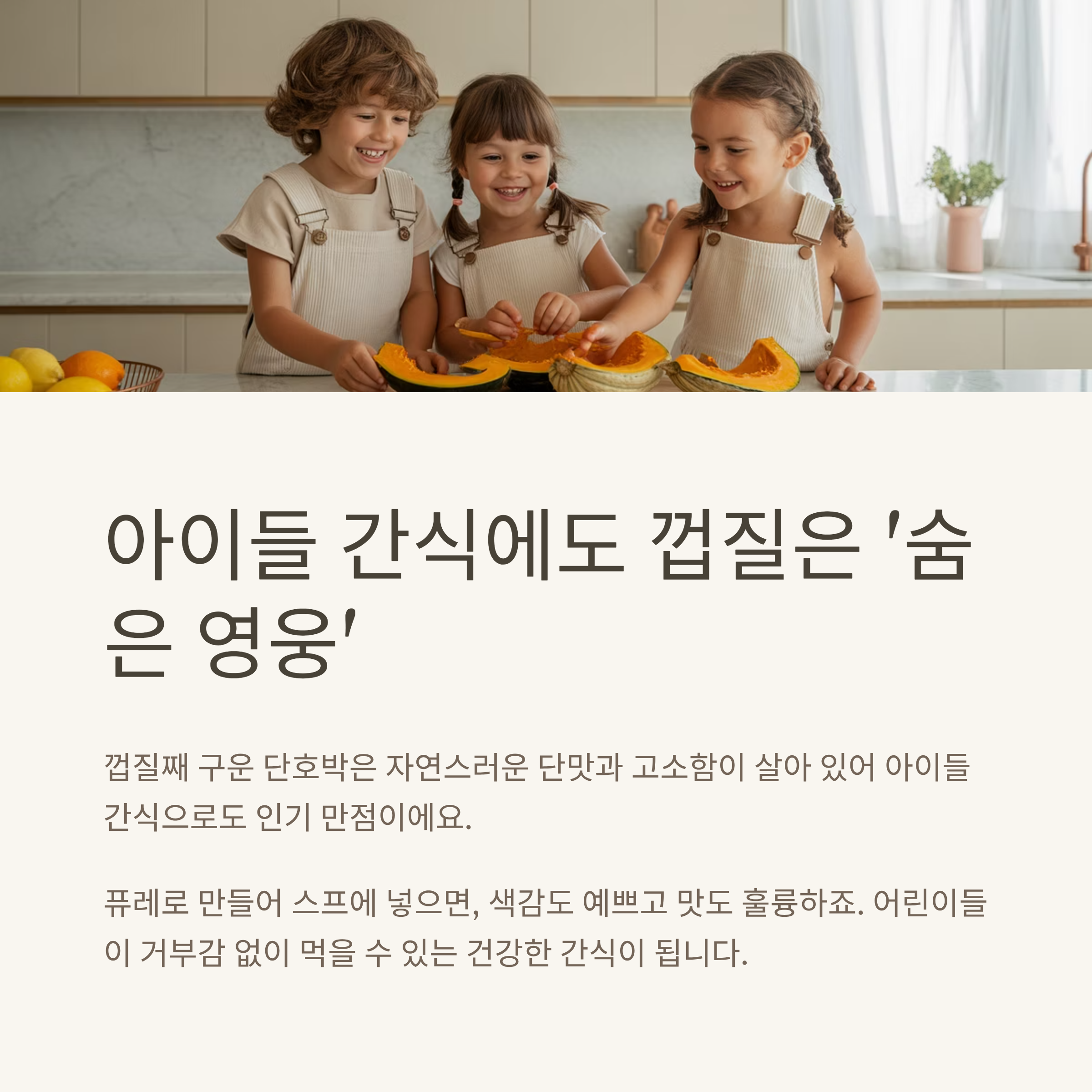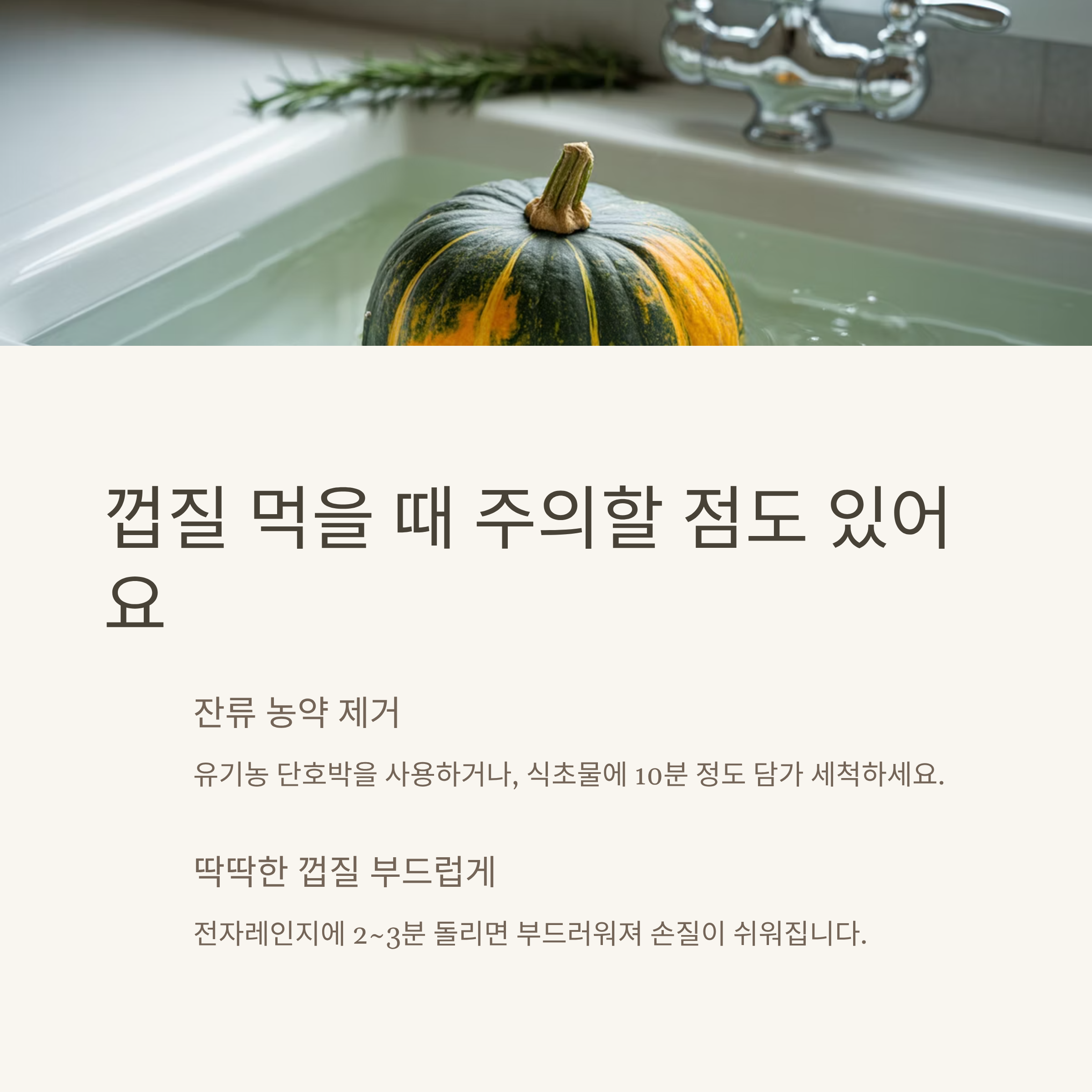 가능하면 유기농 단호박을 사용하거나, 식초물에 10분 정도 담가 세척하면 안전해요.
