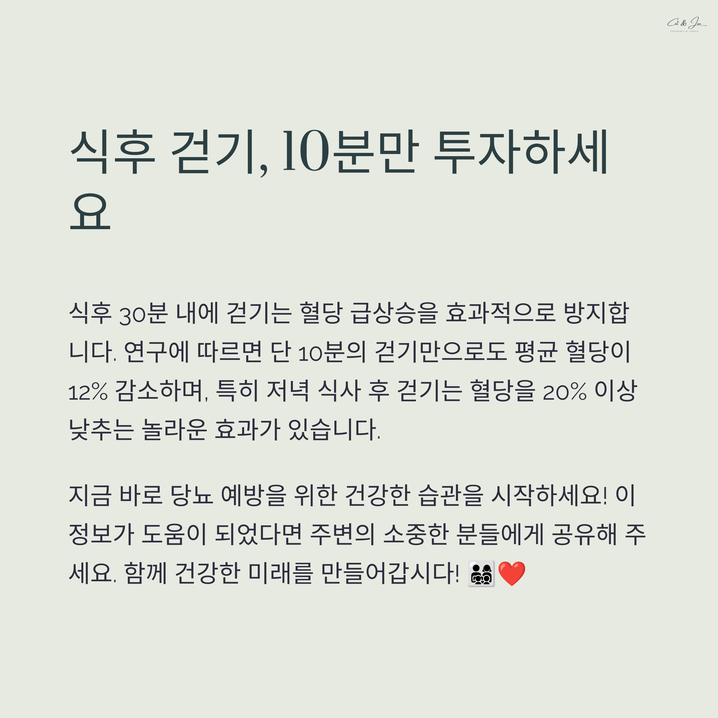 당뇨 예방과 혈당 조절은 단기간의 관리로는 불가능합니다. 꾸준한 식습관 개선과 운동 실천이 가장 중요합니다. 특히 GI 지수가 낮은 식품 위주의 식사와 규칙적인 유산소 운동은 누구나 쉽게 실천할 수 있는 방법입니다. 자신에게 맞는 식단을 구성하고, 부담되지 않는 수준에서 매일 30분 정도의 운동을 실천한다면 혈당을 안정화시키고 인슐린 저항성을 개선할 수 있습니다. 오늘 소개드린 내용을 바탕으로 여러분도 건강한 생활을 시작해보시기 바랍니다.