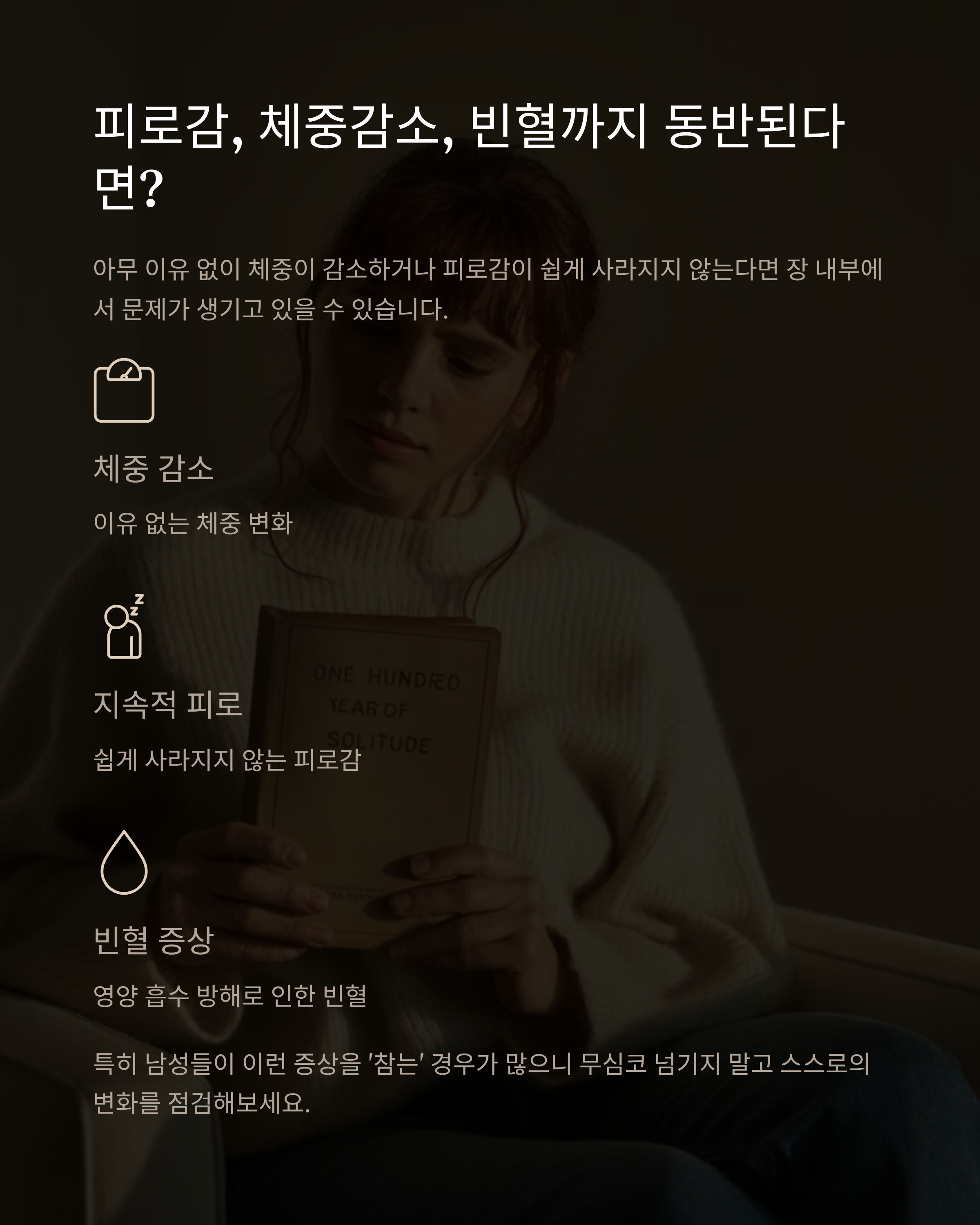 피로감이 쉽게 사라지지 않는다면 장 내부에서 문제가 생기고 있을 수 있습니다.