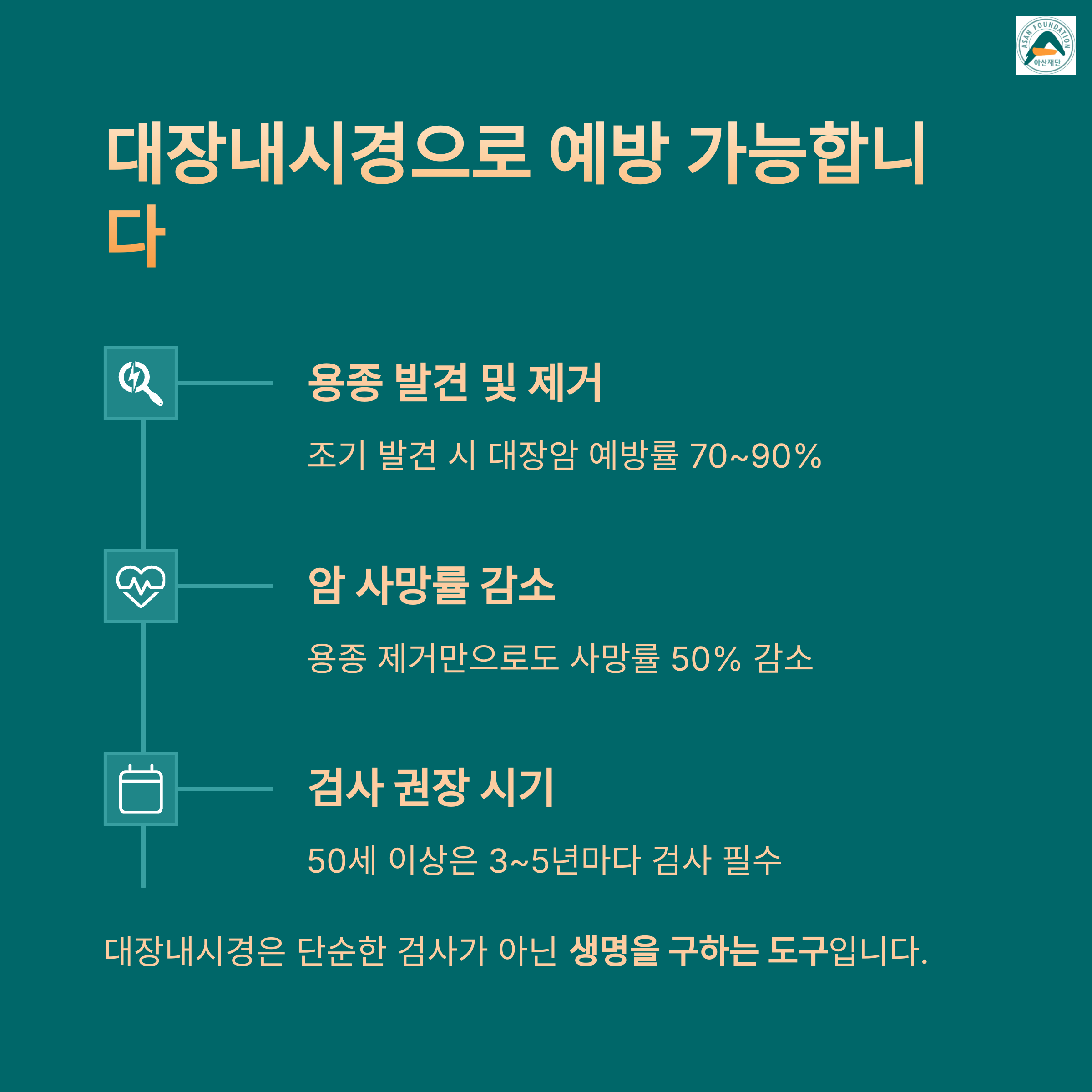 - 암 사망률 감소: 용종 제거만으로도 사망률 50% 감소