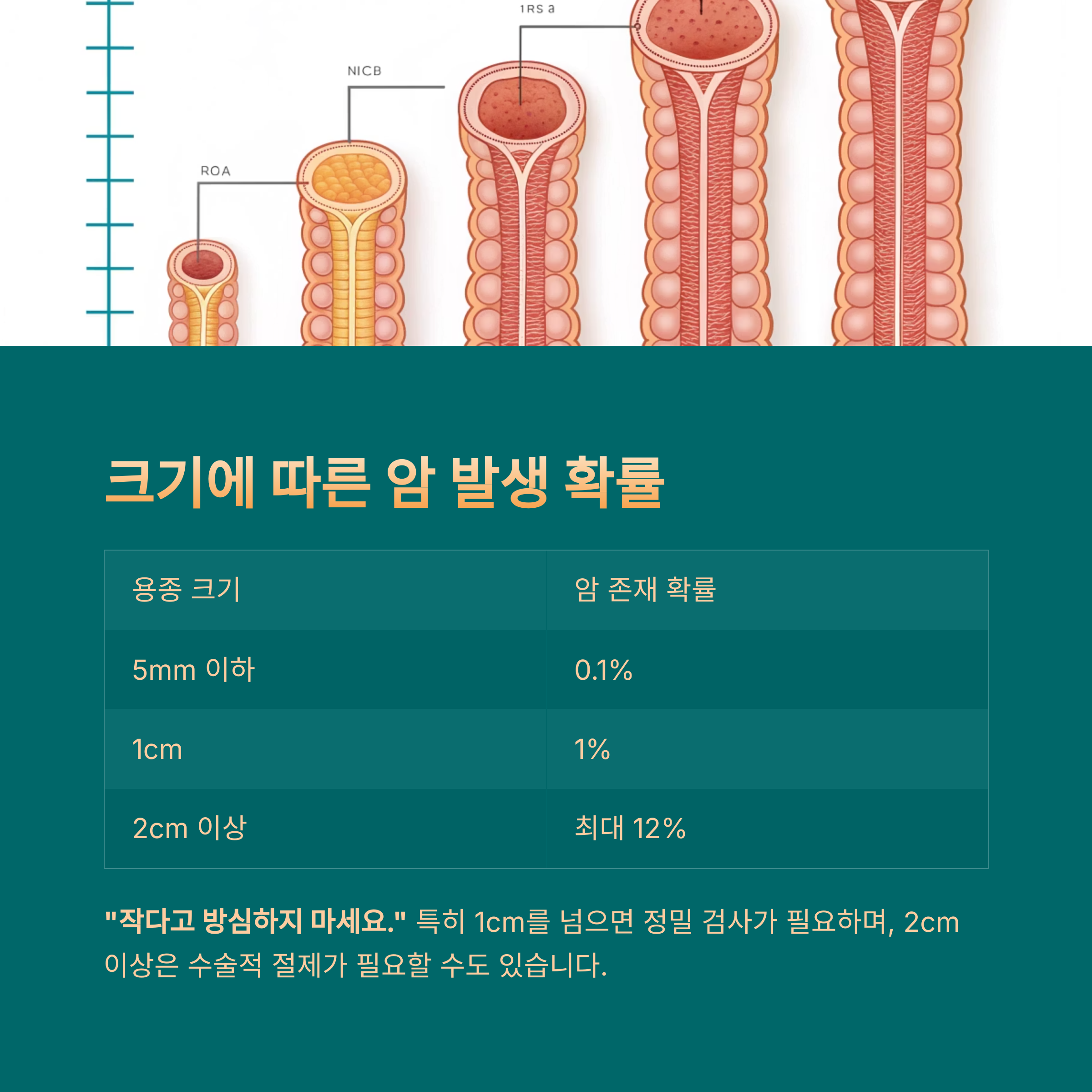 대장용종의 크기에 따라 암 발생 확률은 매우 다릅니다.