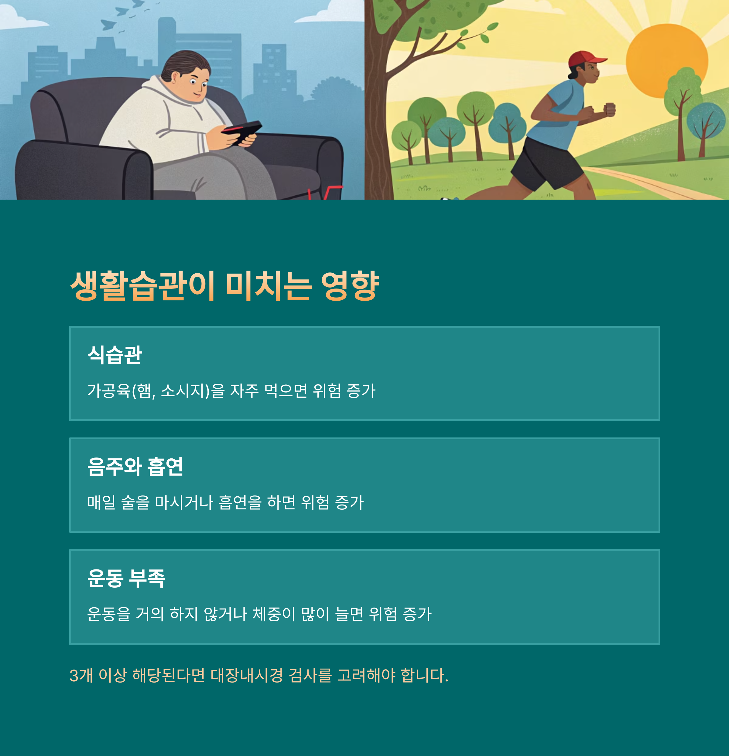 3개 이상 해당된다면 대장내시경 검사를 고려해야 합니다.