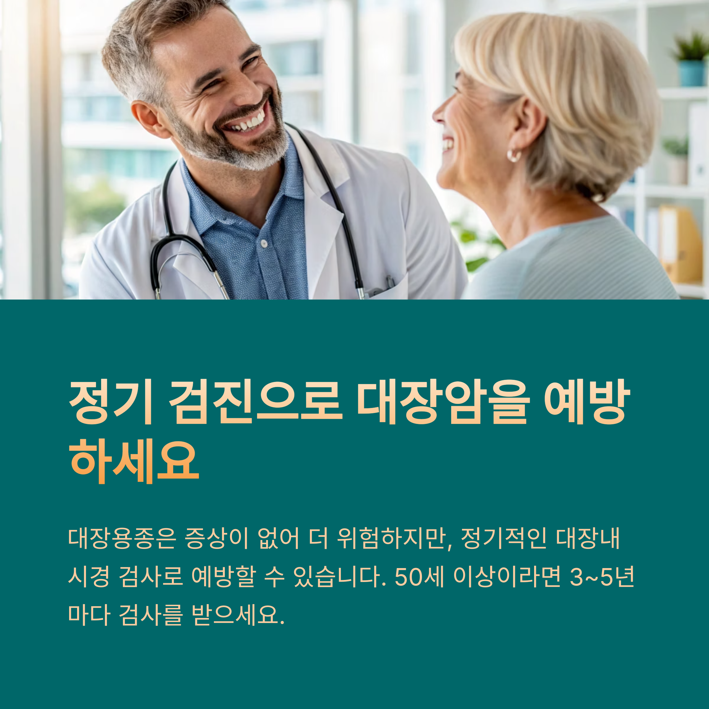 - 검사 권장 시기: 50세 이상은 3~5년마다 검사 필수