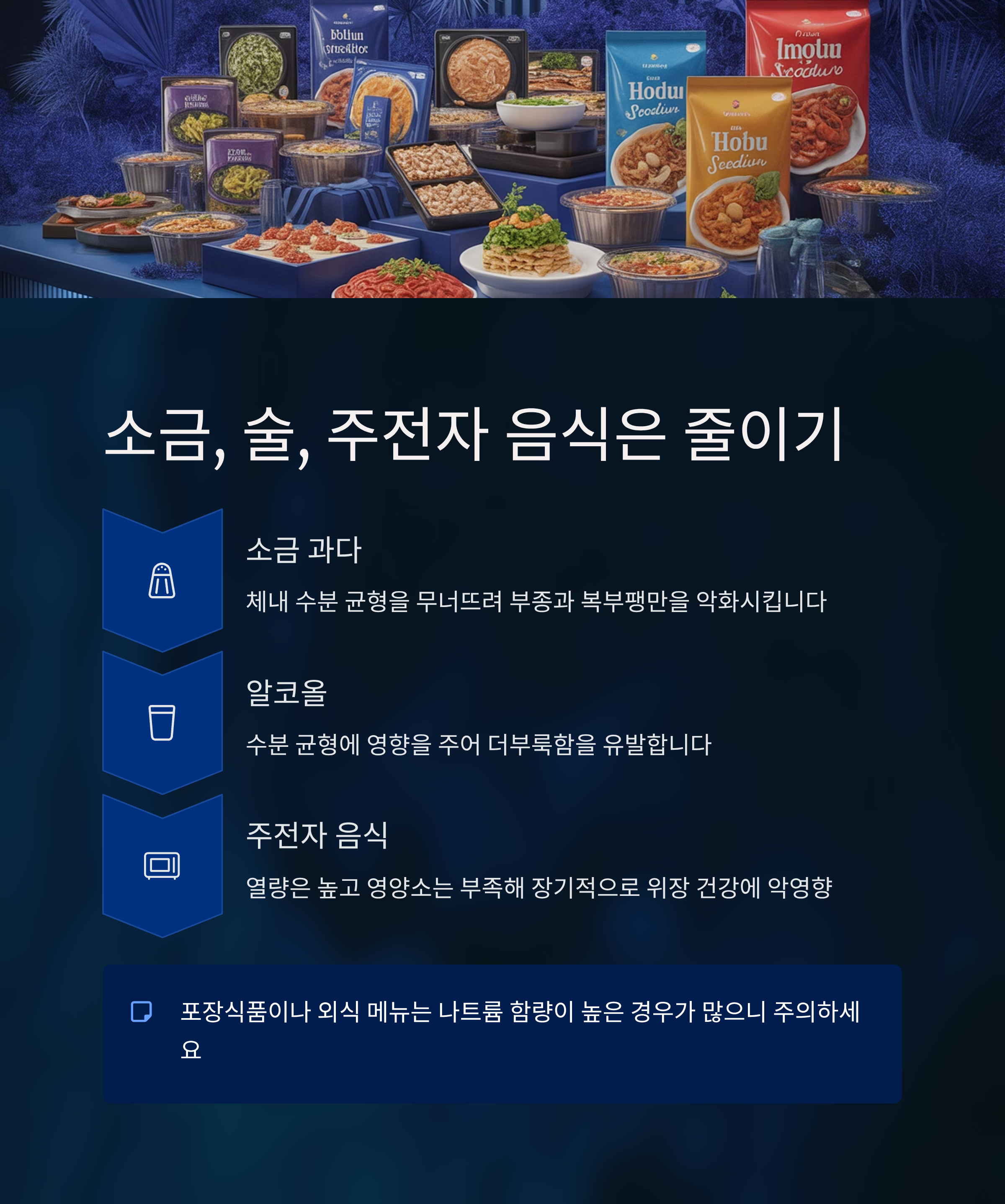 4. 소금, 술, 주전자 음식은 '가급적 줄이기'