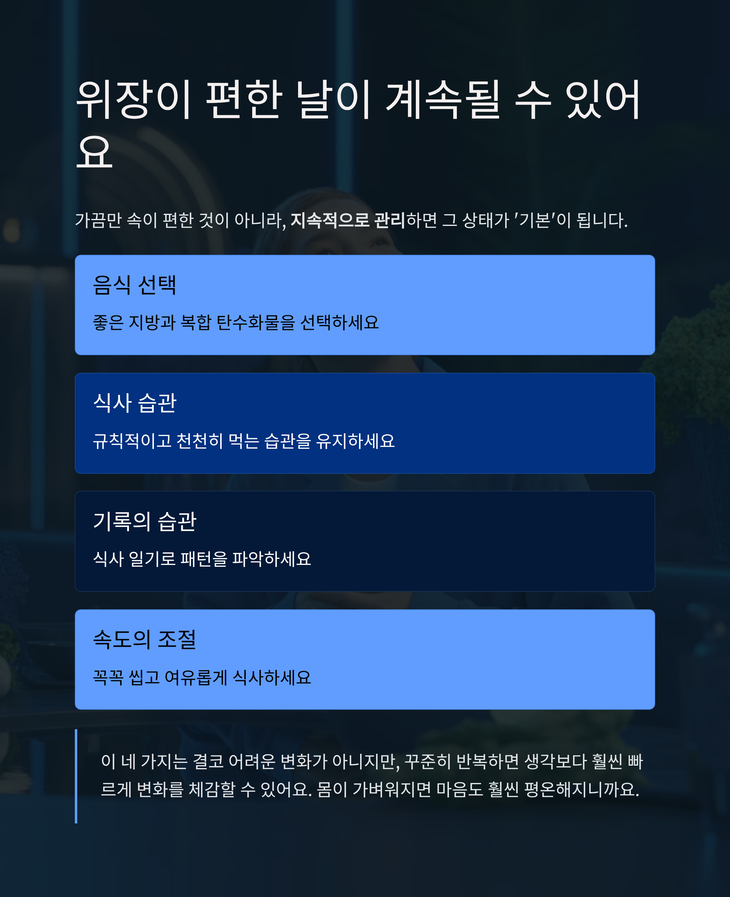 가끔만 속이 편한 것이 아니라, 지속적으로 관리하면 그 상태가 '기본'이 됩니다.