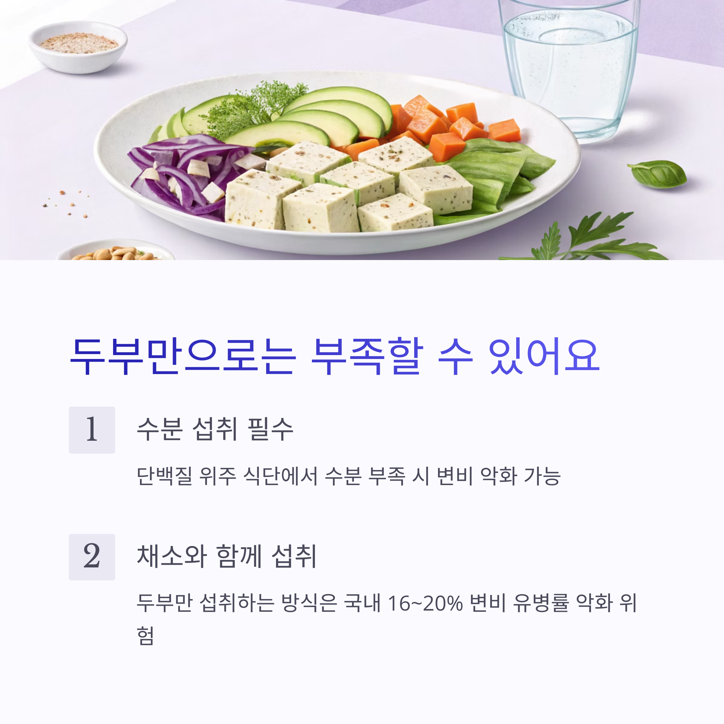 두부는 단백질과 칼슘이 풍부한 대표적인 건강 식품입니다. 특히 체중 관리, 심혈관 질환 예방, 뼈 건강에 뛰어난 효과를 보이지만, 조리법이나 섭취 방식에 따라 오히려 체중 증가나 변비를 유발할 수 있어 주의가 필요합니다. 이 글에서는 두부의 주요 효능과 부작용, 실제 섭취 데이터를 기반으로 건강한 섭취법까지 구체적으로 안내드립니다.