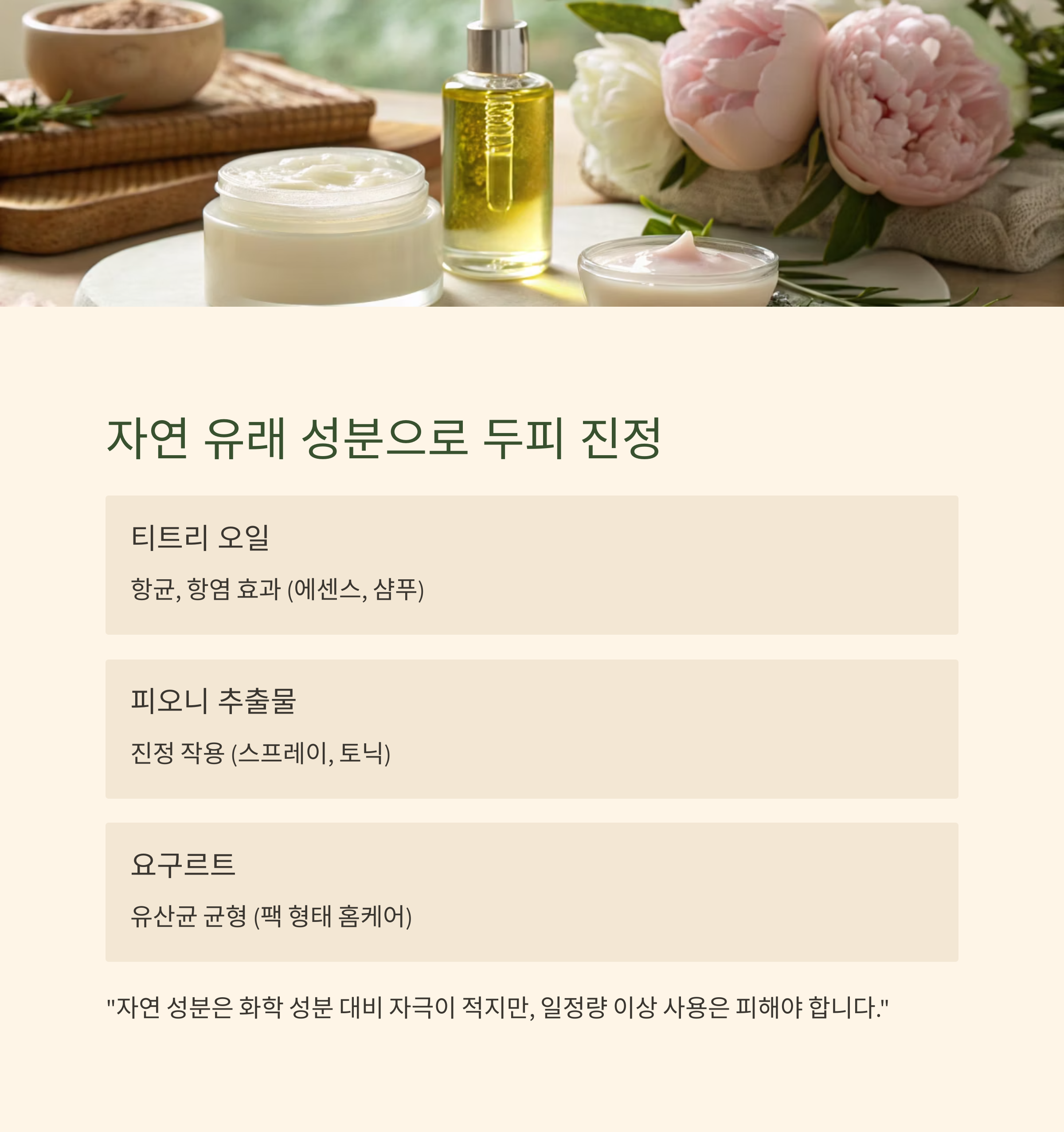 "자연 성분은 화학 성분 대비 자극이 적지만, 일정량 이상 사용은 피해야 합니다."