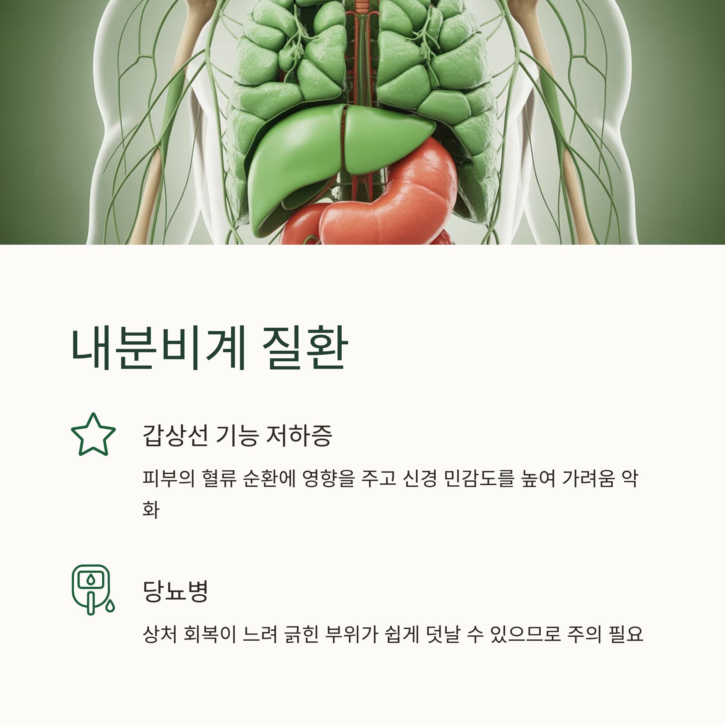 호르몬 이상 또한 가려움의 원인이 될 수 있습니다. 갑상선 기능 저하증, 당뇨병 등은 피부의 혈류 순환에 영향을 주고, 신경 민감도를 높여 가려움을 악화시킵니다.