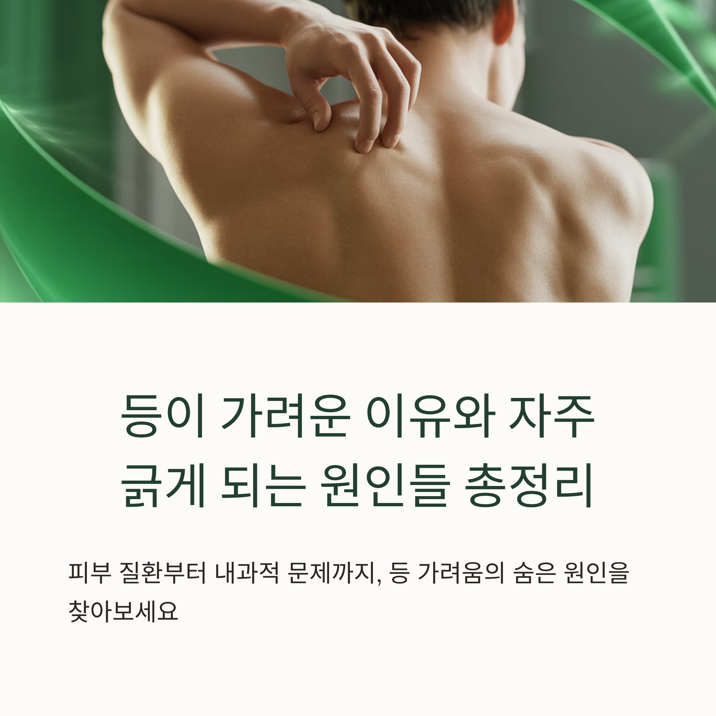 등이 자주 가렵고, 무의식중에 긁다 보면 상처가 나고 피부가 손상되는 경우가 많습니다. 가벼운 피부 건조에서부터 간이나 내분비 계통의 이상까지, 등 가려움은 다양한 원인의 신호일 수 있습니다. 이 글에서는 단순한 피부 문제를 넘어, 어떤 경우 전문적인 진단이 필요한지를 알려드립니다.
