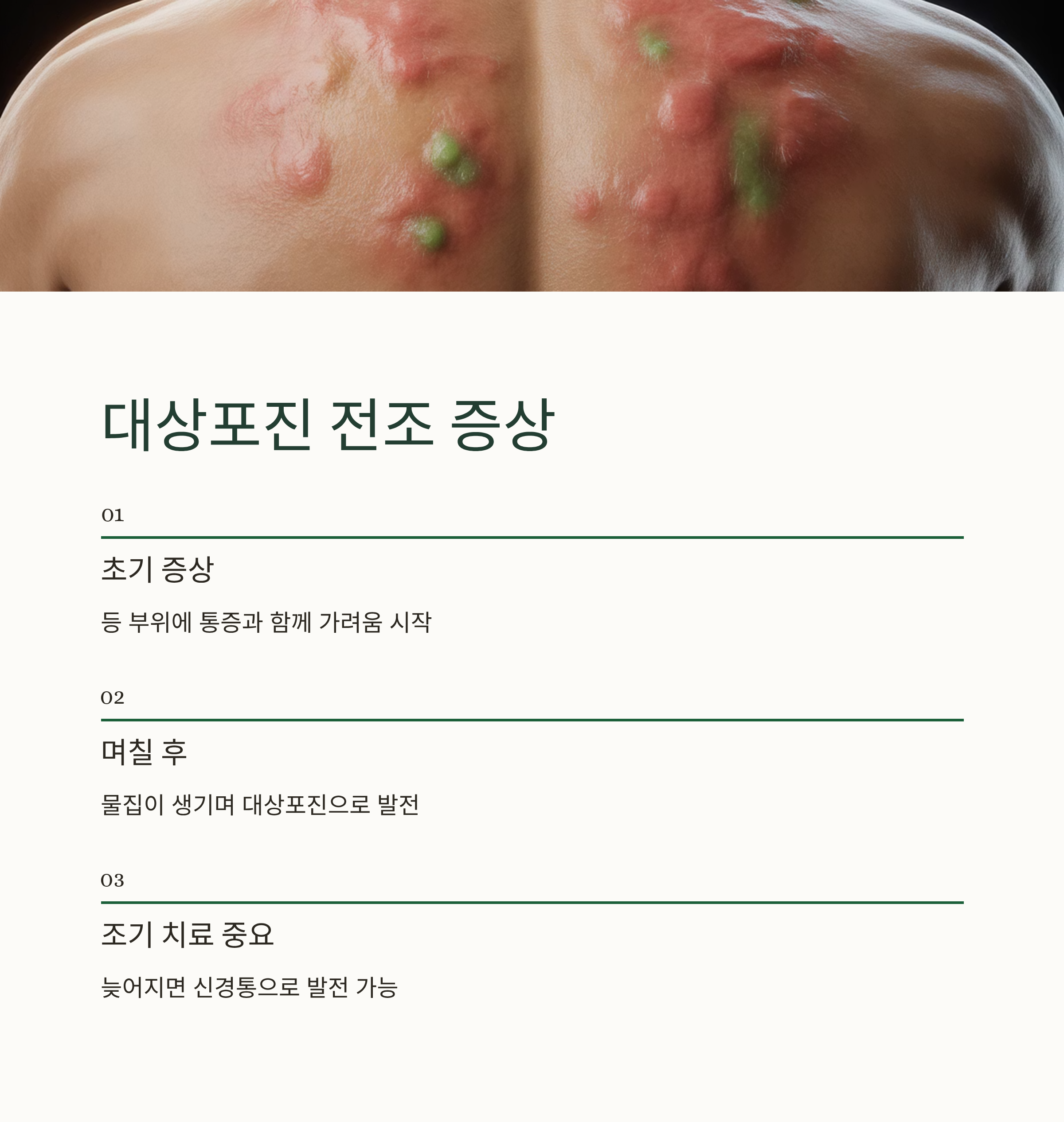 초기에는 단순한 가려움으로 착각할 수 있지만, 조기 치료가 늦어지면 신경통으로 발전할 수 있으므로 주의해야 합니다.