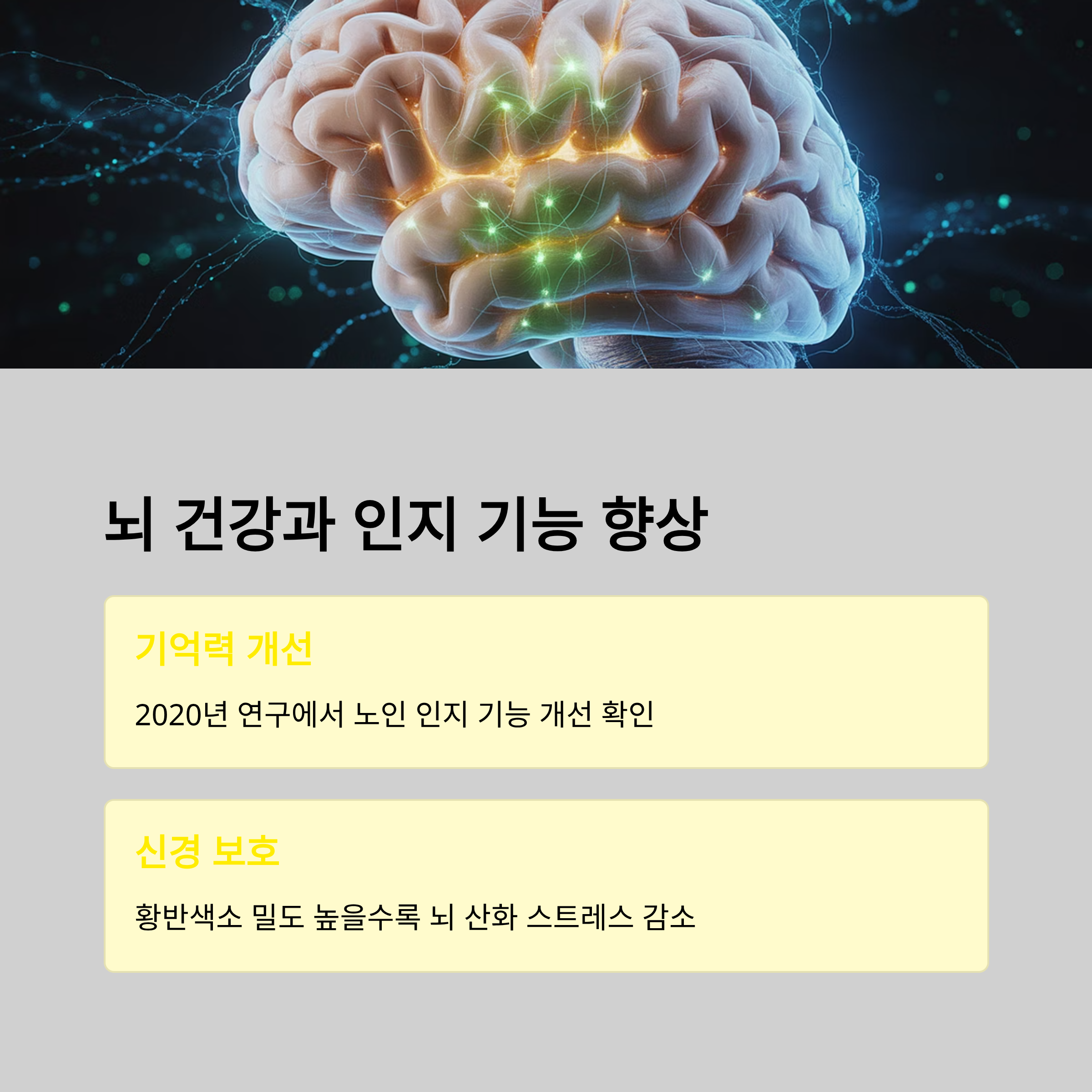 2020년 연구에서는 루테인·지아잔틴 섭취가 노인의 기억력과 인지 기능 개선에