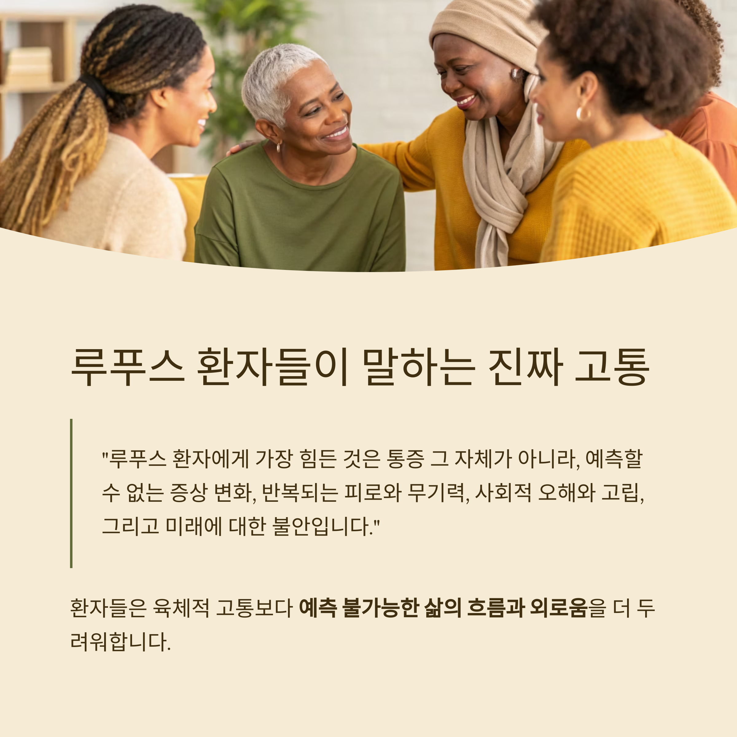 "루푸스 환자에게 가장 힘든 것은 통증 그 자체가 아니라, 예측할 수 없는 증상 변화, 반복되는 피로와 무기력,