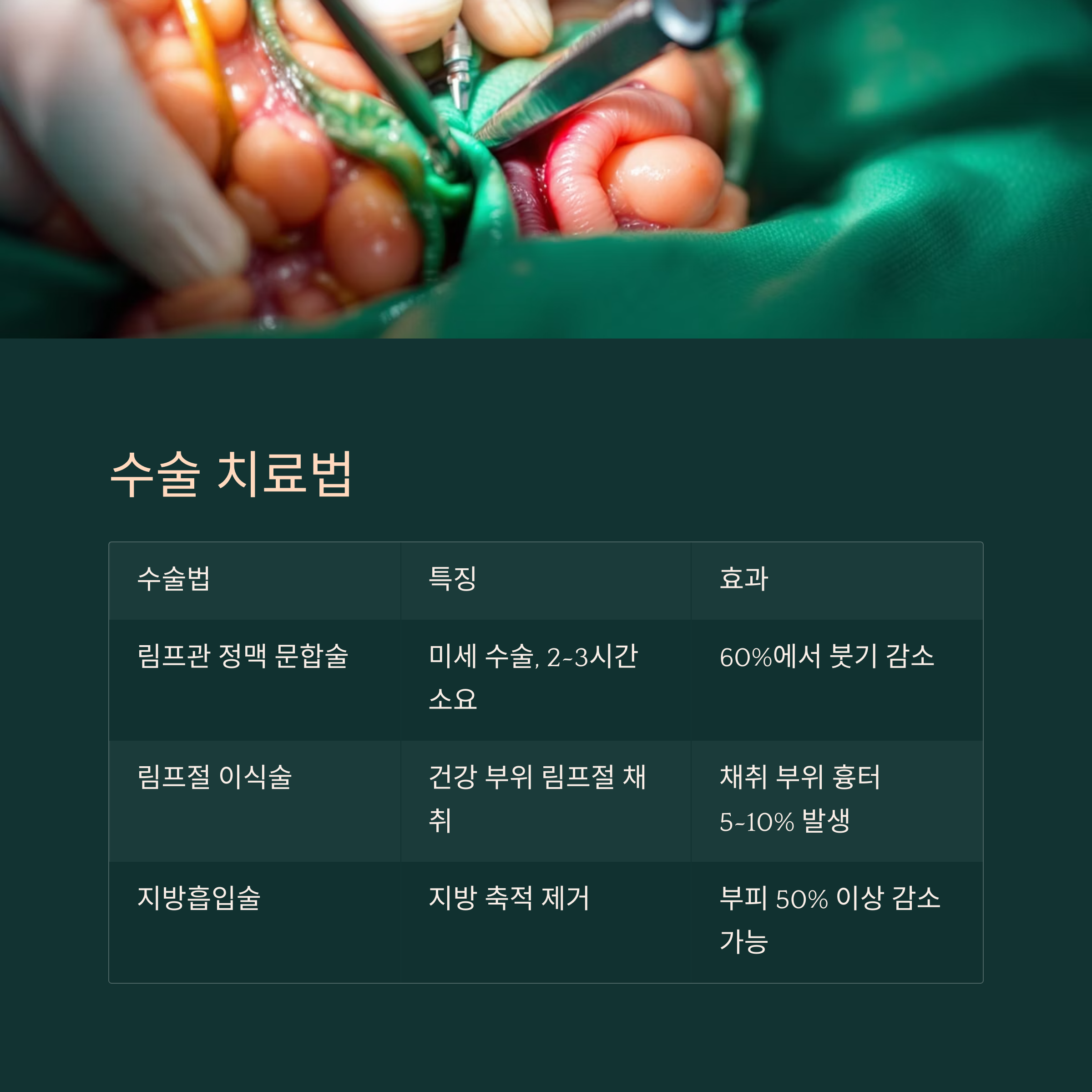 수술 치료법 : 림프 순환 회복의 실질적 접근