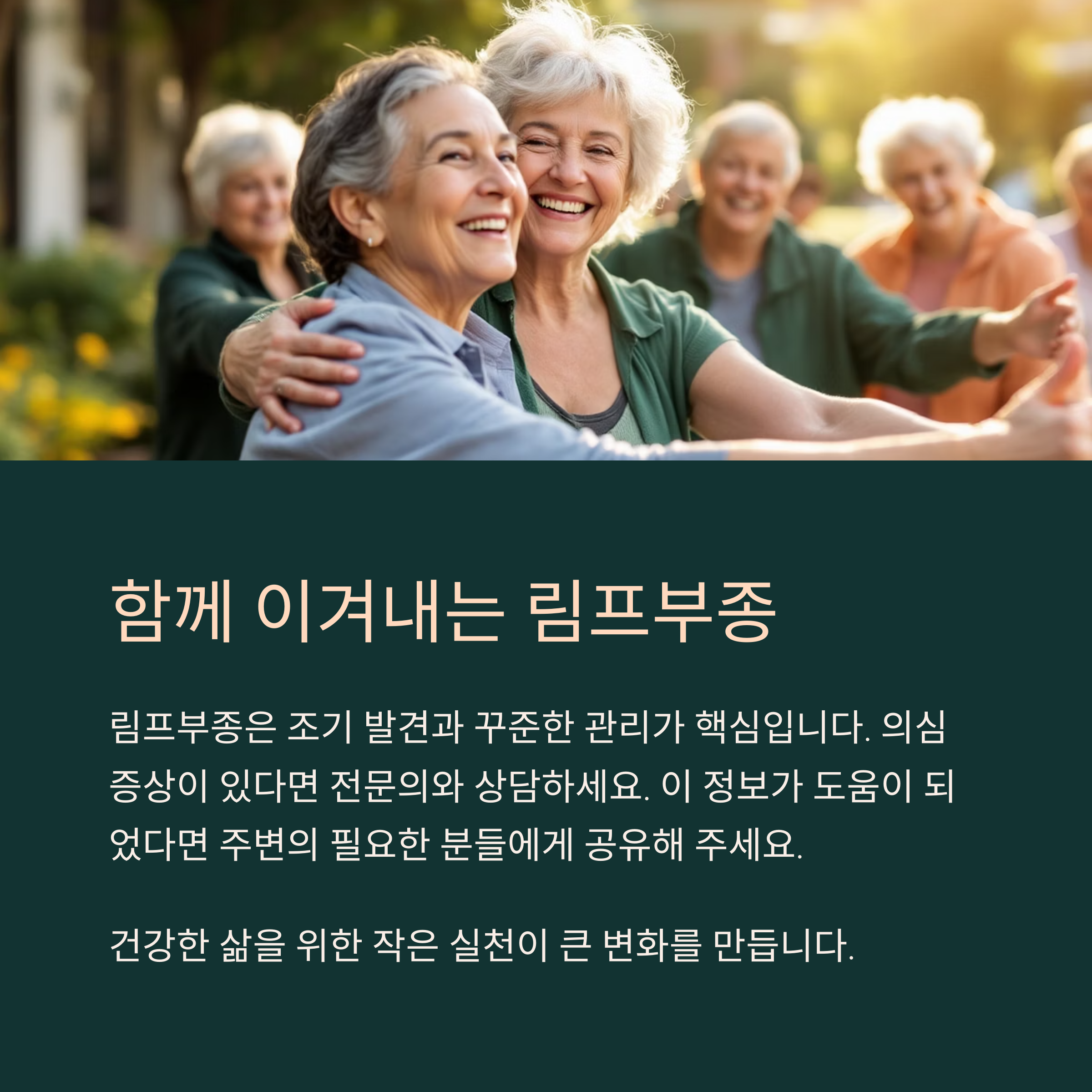 림프부종을 이겨내는 핵심 전략임을 잊지 마셔야 합니다.