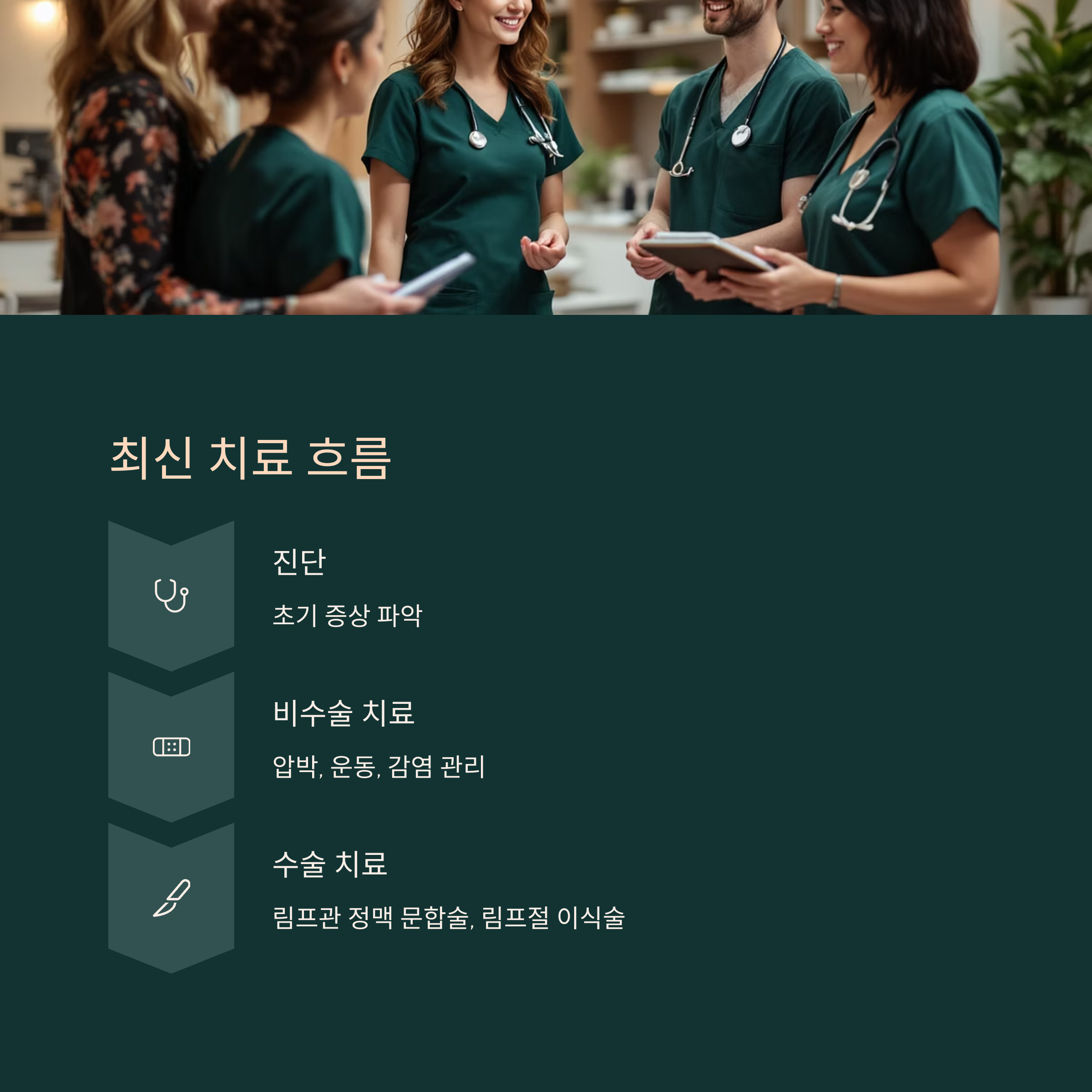 압박, 운동, 감염 관리 등의 비수술 치료법이 동시에 다뤄지고 있습니다.