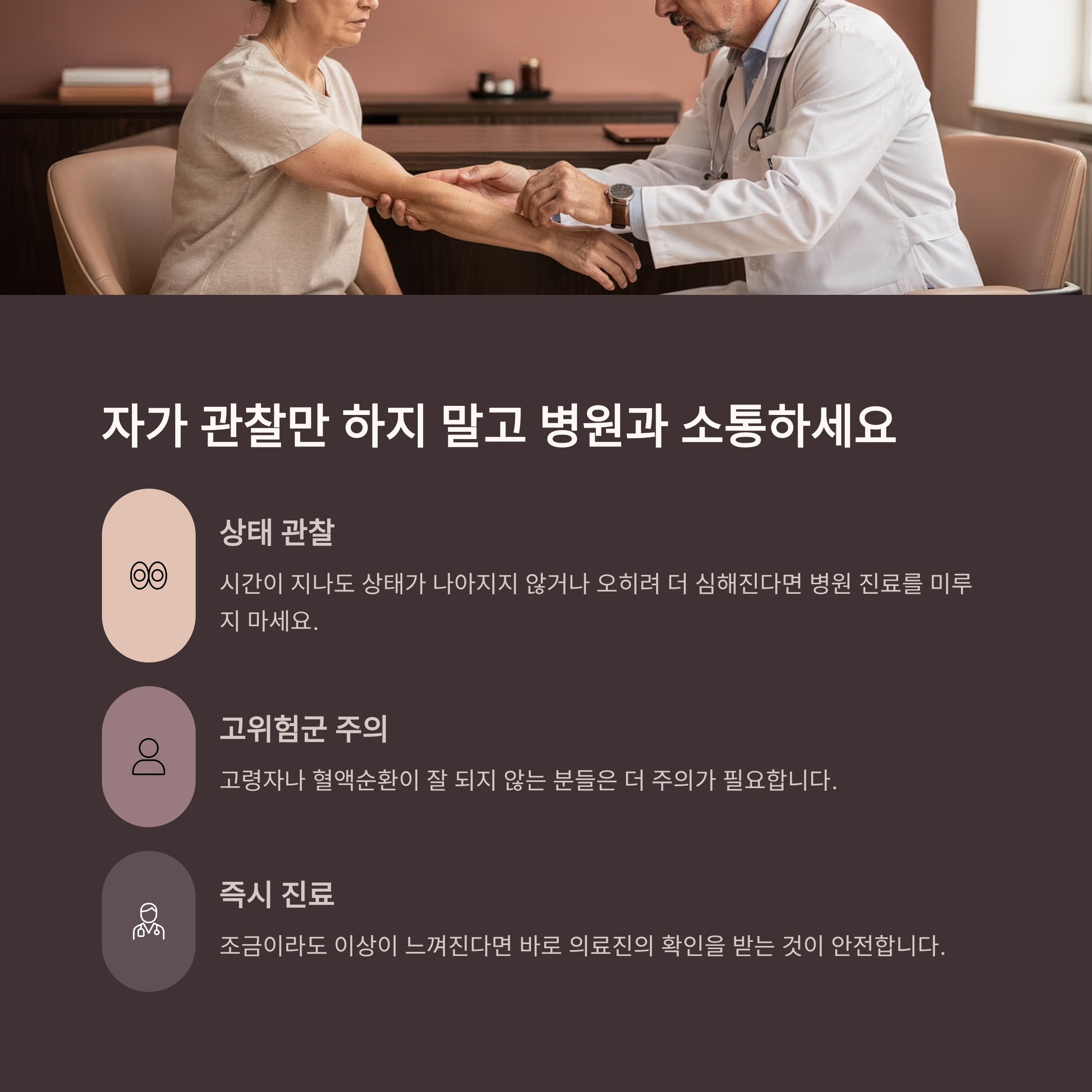 자가 관찰만 하지 말고 병원과 소통하세요