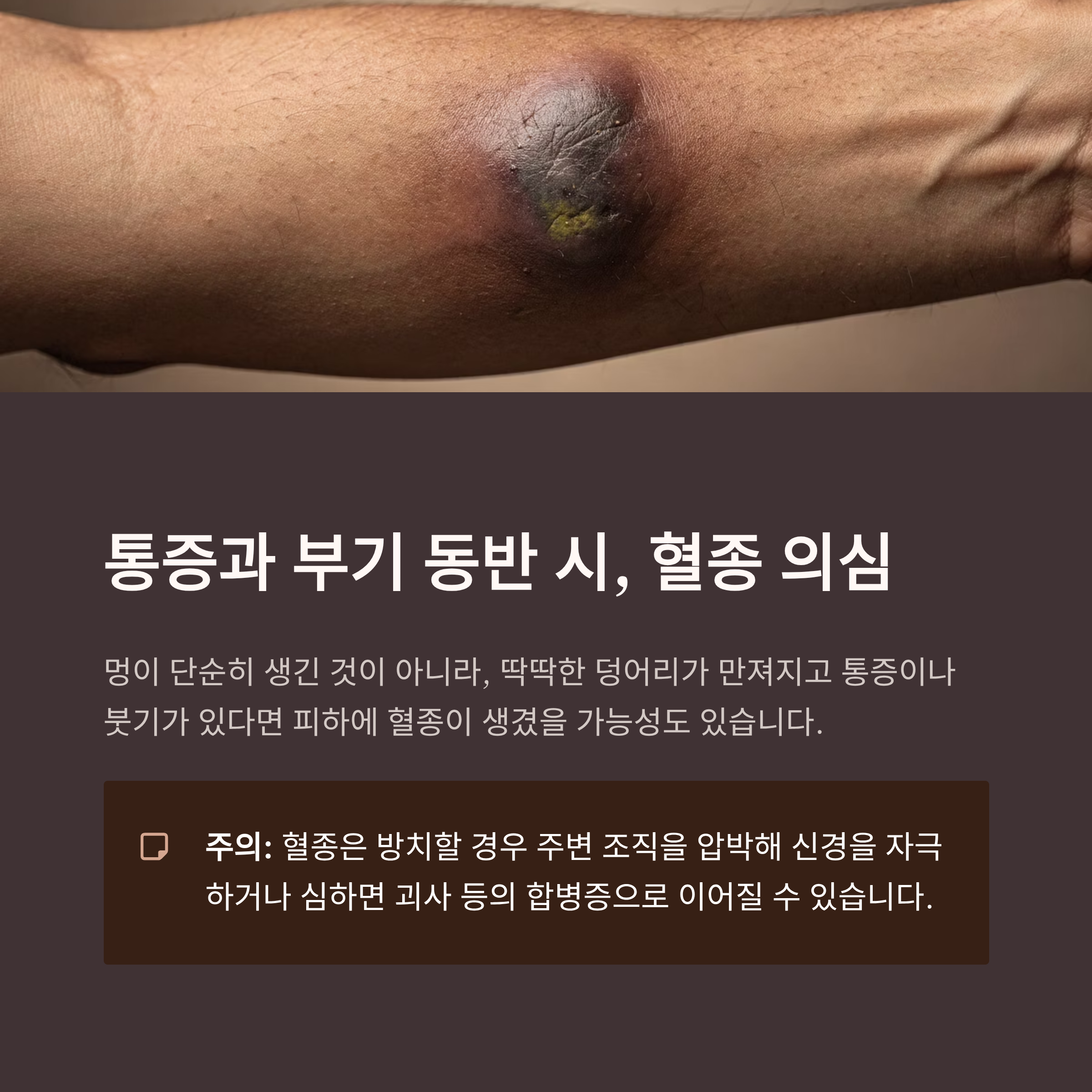 통증과 부기 동반 시, 혈종 의심