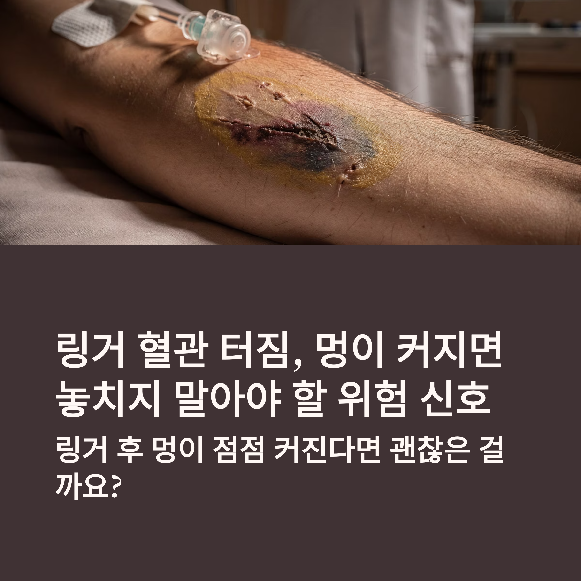 간단한 수액 치료 후 팔에 멍이 드는 경우가 종종 있습니다. 대부분은 자연스럽게 사라지지만, 멍이 점점 커지거나 통증이 심해진다면 주의가 필요합니다. 특히 혈관이 터지면서 피하 출혈이 확산되는 경우라면 더 큰 문제가 될 수 있어요. 오늘은 링거 혈관 터짐으로 인해 생기는 멍이 커질 때 어떤 점들을 유의해야 하고, 위험 신호는 무엇인지 알아보겠습니다.