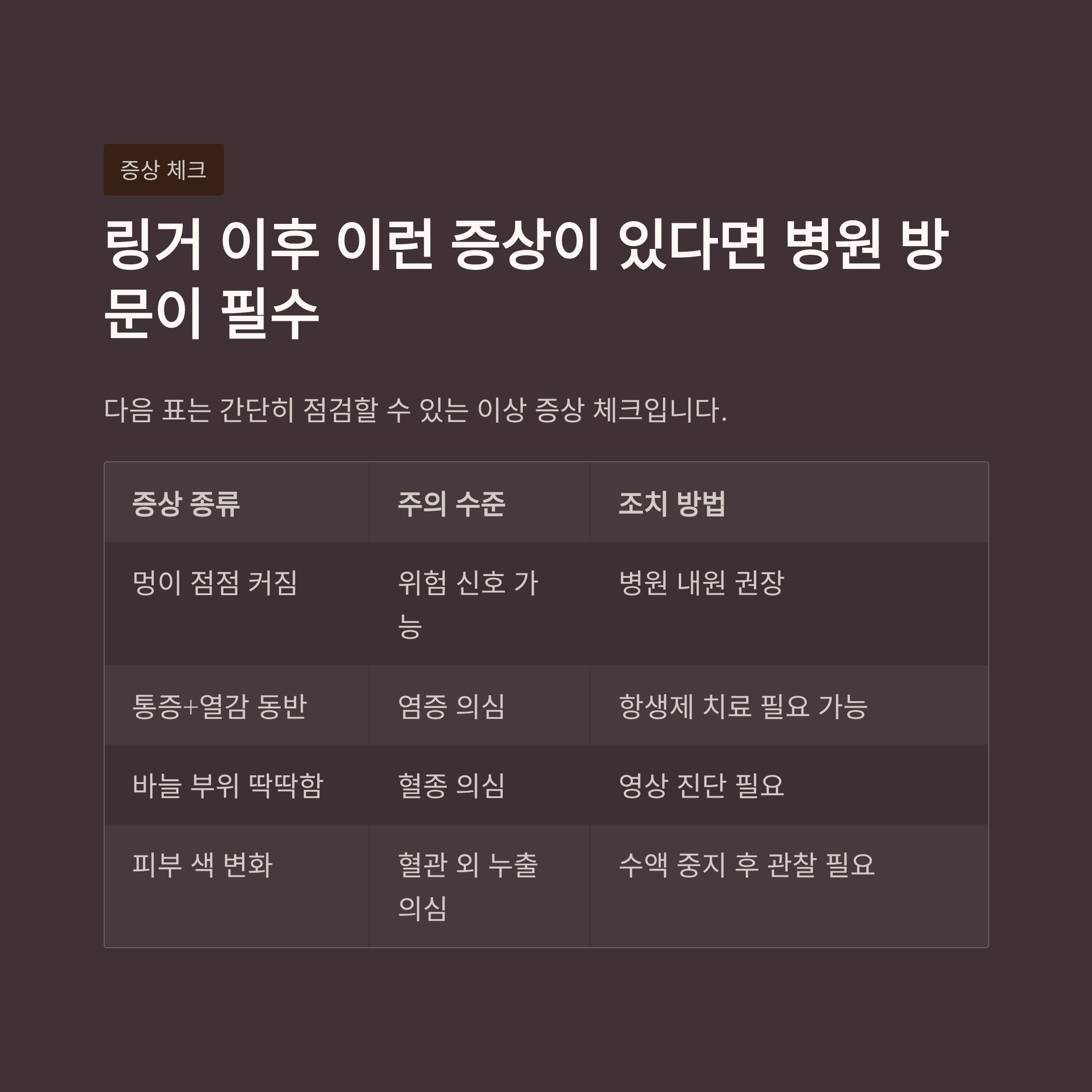링거 이후 이런 증상이 있다면 병원 방문이 필수