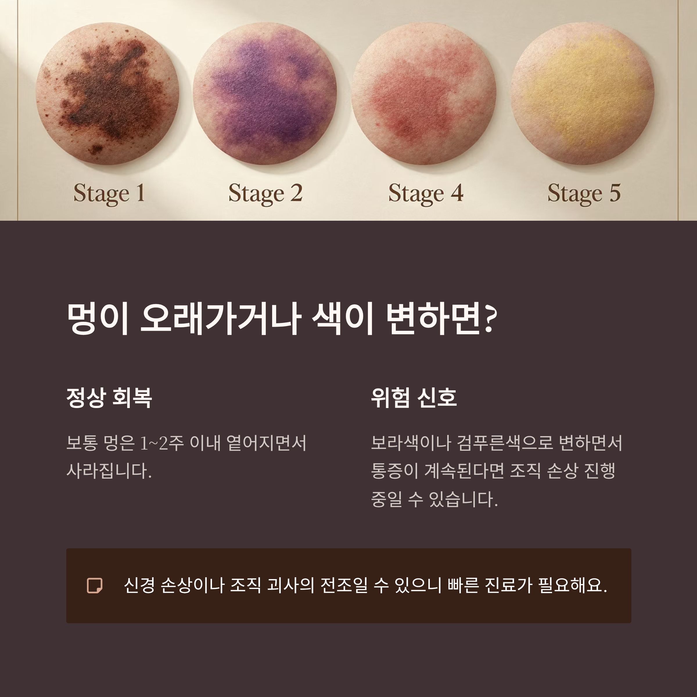 이런 경우는 단순 멍이 아니라 신경 손상이나 조직 괴사의 전조일 수 있으니